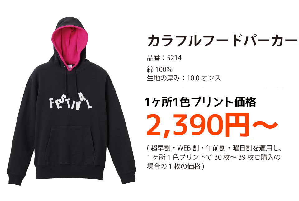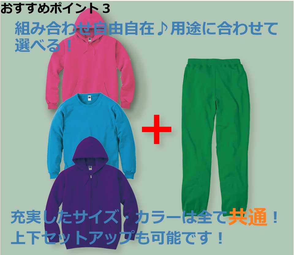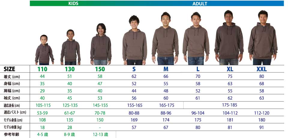 100cm~XXLと幅広いサイズ展開で、子供から大人まで様々なコミュニティでオリジナルパ ーカーが作製できます。キッズダンスやサークル、部活動など、アピールの場におすすめです!