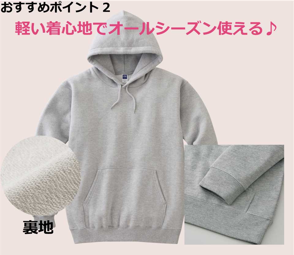 軽い着心地と型崩れしにくいしっかりとした生地。フードは2重のためボリュームもありパーカーな らではの綺麗なシルエットがおすすめです。