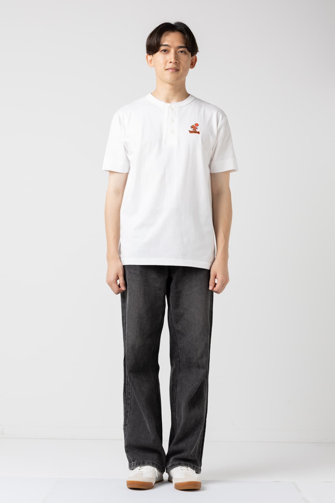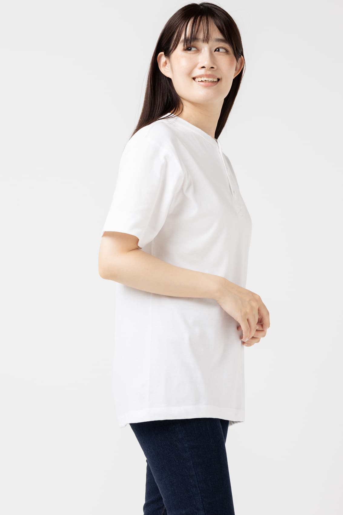5004 | United Athleえり元のボタンがアクセントのヘンリーネックTシャツ。ボタンの取り外しもスムーズに行うことができ、着脱もラクラク。重ね着にも便利なちょうど良い生地の厚さで、オールシーズン着用が可能です。綿100%で柔らかく耐久性のある糸を使用しており、動きやすく長時間の着用でも疲れにくいので、一日中体を動かす方のユニフォームとしてもおすすめです。