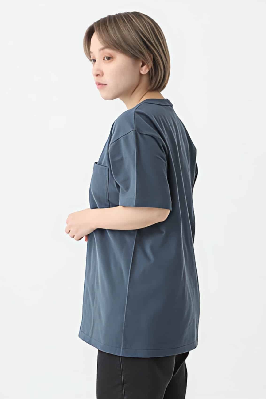 OE1119 | TRUSS洗濯してもよれにくい縫製で、普段使いにもおしゃれなTシャツ。珍しいスクエア型のポケット(縦約12㎝×横約11cm)がポイントです。落ち着いた色味をご用意しておりますので、幅広い年齢層の方にお使いいただけます。販売用としてはもちろんのこと、スタッフユニフォームやお仲間同士でのお揃いTシャツにも素敵です。