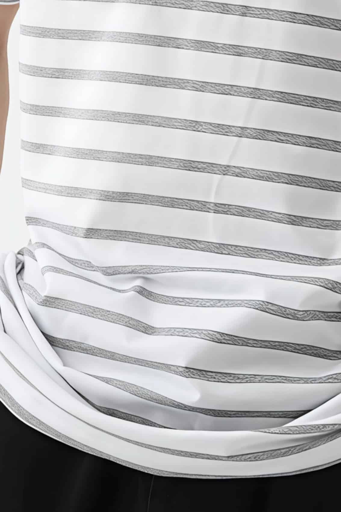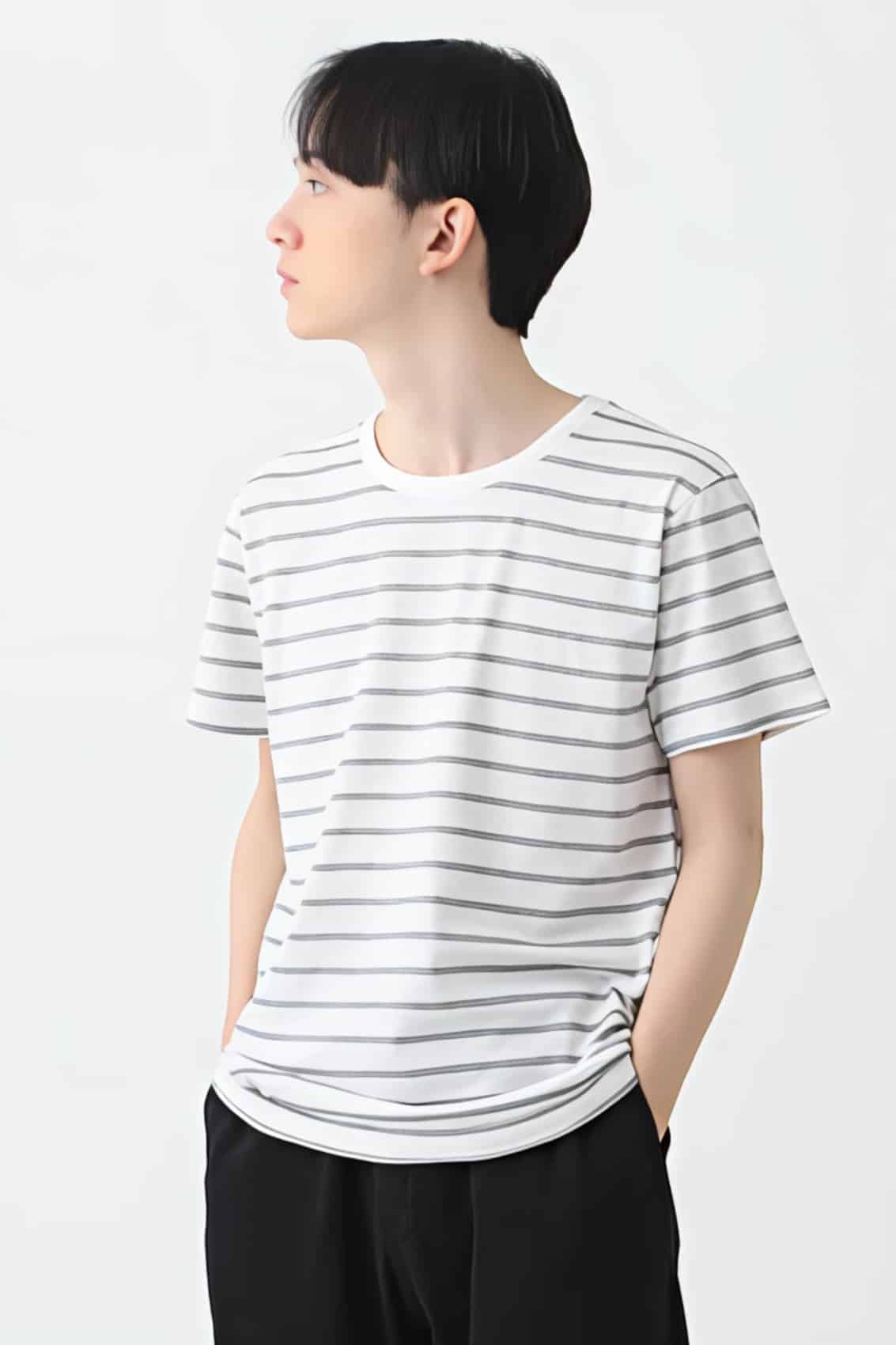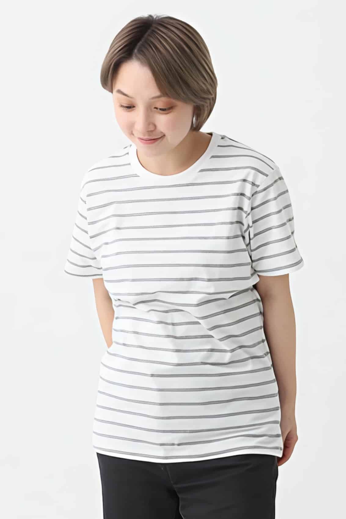 ホワイトを基調としたベースに細めのボーダーが入った、さわやかで清潔感ある印象のTシャツ。すっきりとしたシルエットでベーシックなボーダーは流行に左右されずお使いいただけるので、個人やお仲間同士でのご使用だけでなく、アパレルやショップの販売用としてもおすすめです。胸元やそでに刺しゅうを施してもおしゃれです。