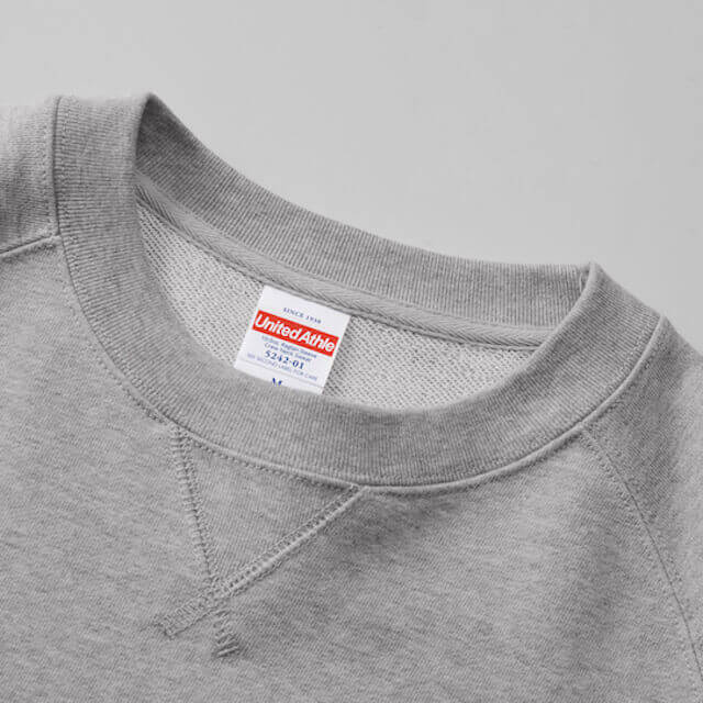 5242 | United Athle首元の曲線がカジュアルな印象を与えるスウェット。首元が広いので圧迫感なく切ることができ、快適に過ごせます。ジッパーやボタンが無いため着脱が簡単で、動きやすく普段使いやくつろぎたいとき、スポーツするときにもぴったりです。スポーツサークルのチームウェアやアパレルブランドの商品にもおすすめです。こちらの商品は「らくカジスウェットパンツ(品番:5217)」と合わせてお使い頂けます。
