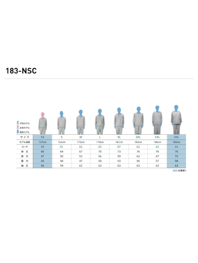 - サイズ表(XS〜4XL)