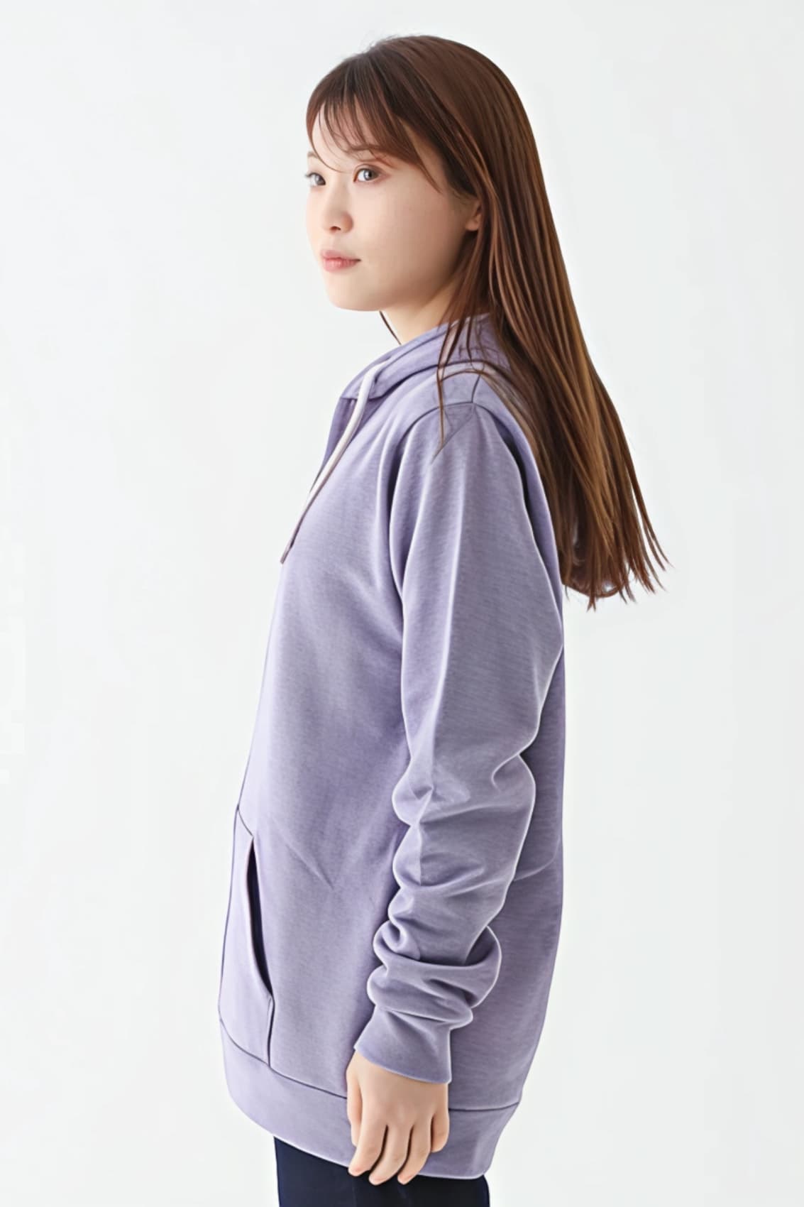 コットン・ポリエステル・レーヨンの3種類の糸をブレンドしている注目素材のパーカーです。とても柔軟性があり、肌触りと着心地の良さでは圧倒的な魅力を持っています。色味もナチュラルな印象が加わるヘザー仕様で、フードの紐をホワイトにしてアクセントを付けていたり、さらにジップも上下開閉可能であったり、オシャレなポイントが満載です。プリントをしなくても1枚でもオシャレに着れるので是非試して頂きたいパーカーです。