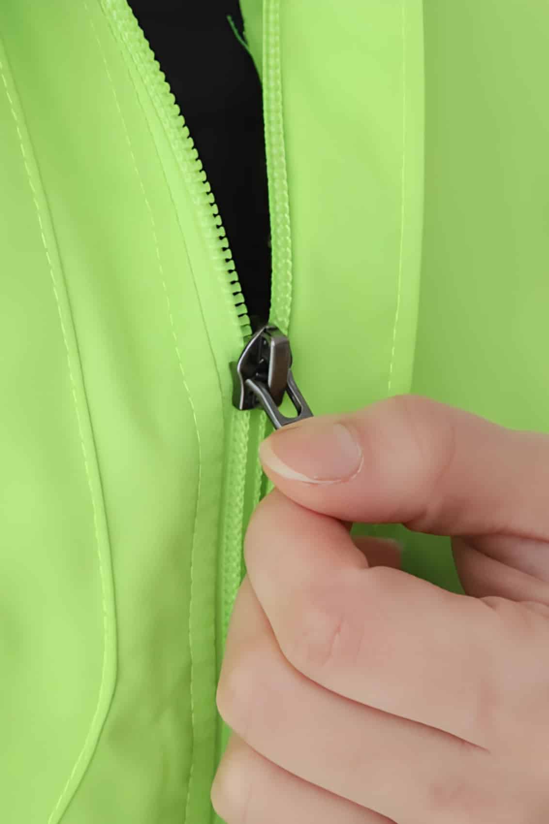 ファスナー部分が隠れる、比翼ファスナー仕様となっており、すっきりとした印象で、防水性もあります。