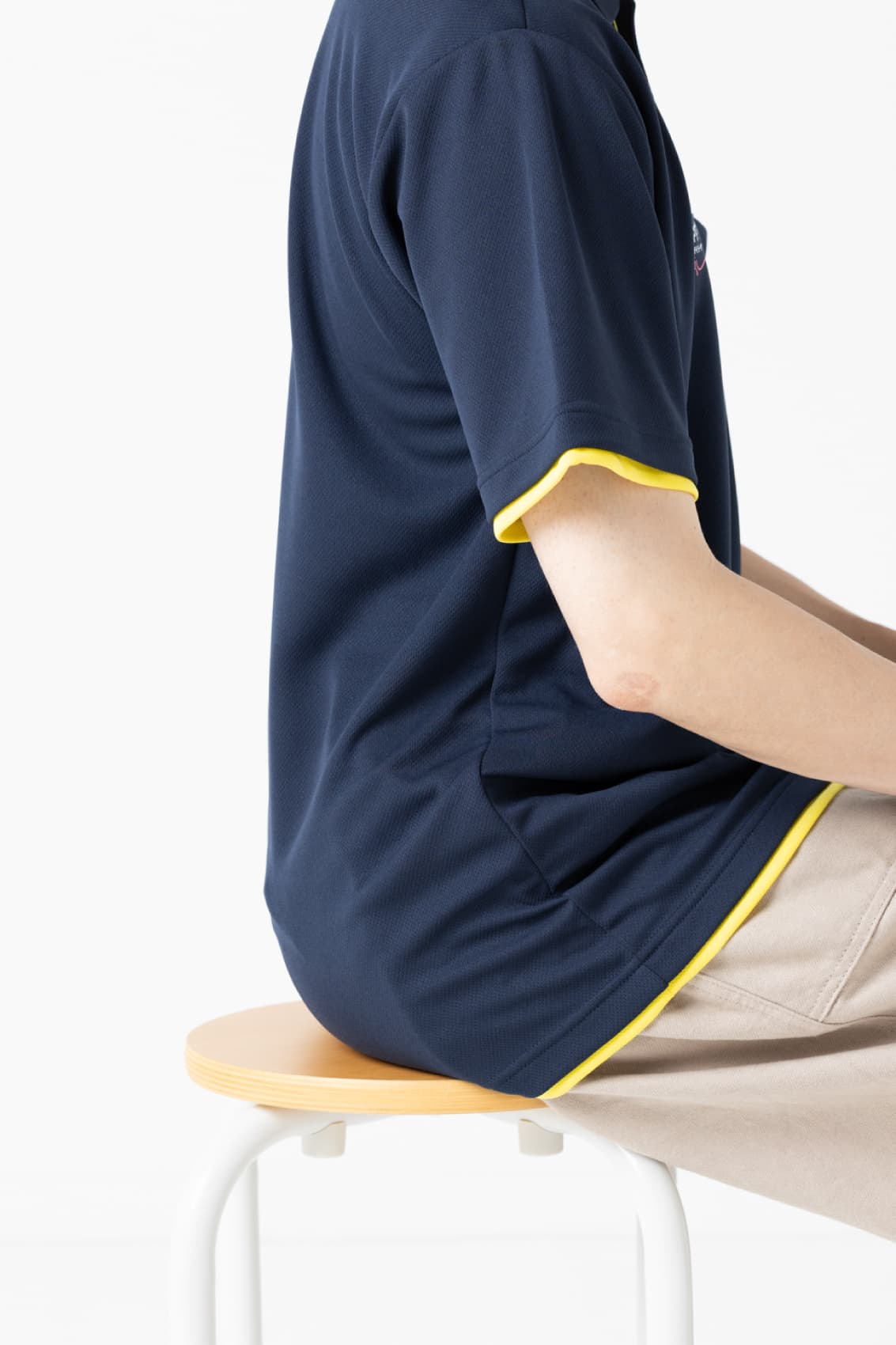 えり元やそで口に異なる色の布を重ねたレイヤードデザインがアクセントとなり、小さなロゴやワンポイントの刺繍でも華やかにみえます。配色のバリエーションも豊富で、企業やチームのカラーに合わせて選ぶことができるので、統一感を持たせられます。さらに、えり元やそで口のレイヤード部分は肌あたりがやわらかく、長時間の着用でも快適に過ごせます。
