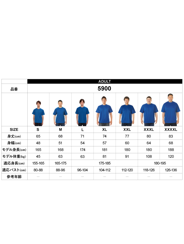 XXL~XXXXLは+100円、5XL、6XLは+300円別途料金がかかります。5XL・6XLはホワイト、ブラック、レッド、パープル、オレンジ、グリーン、ネイビー、コバルトブルー、ターコイズブルー、オリーブドラブ、バーガンディ、トロピカルピンク、イエロー、ヘザーチャコールのみ。