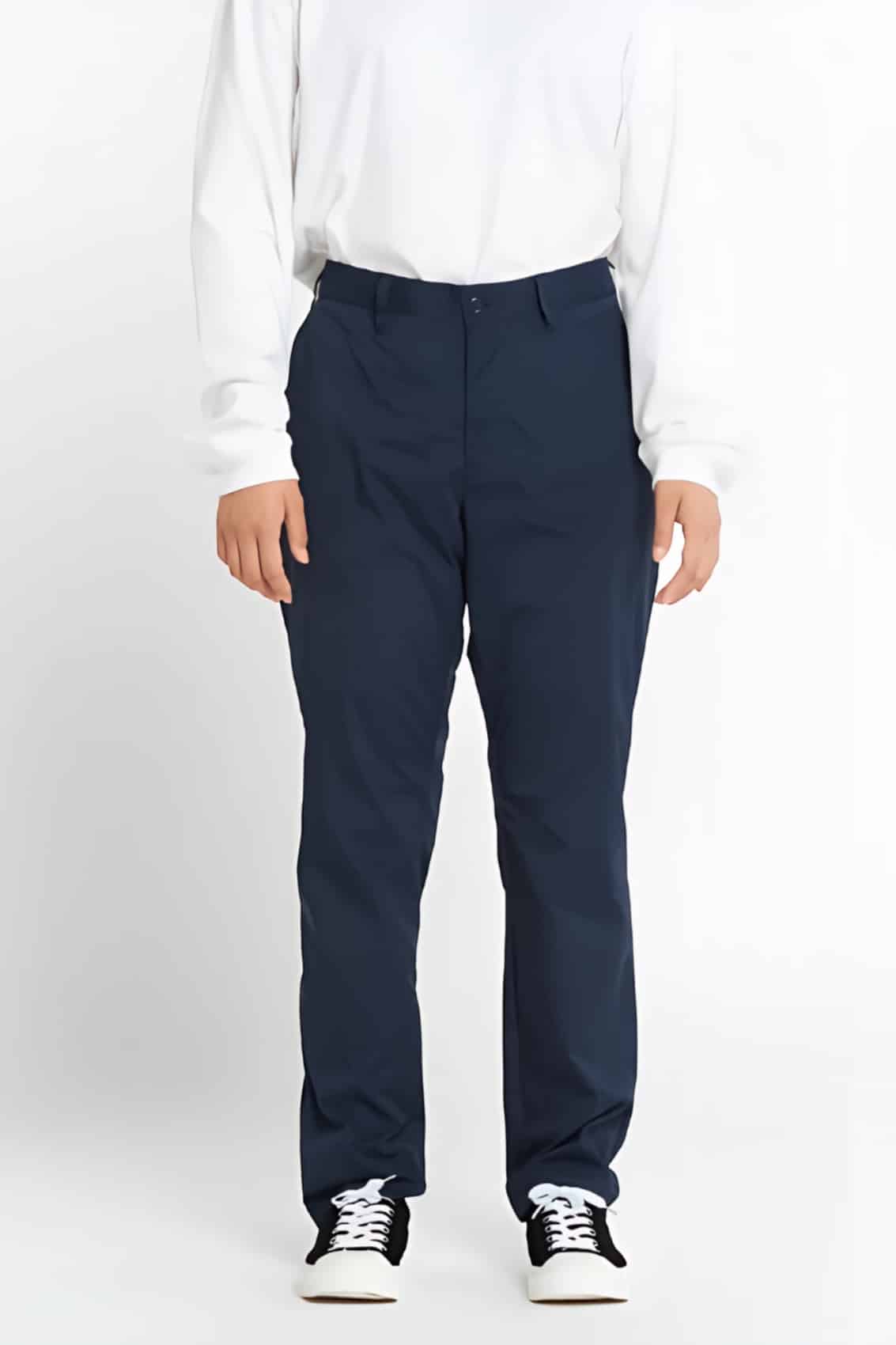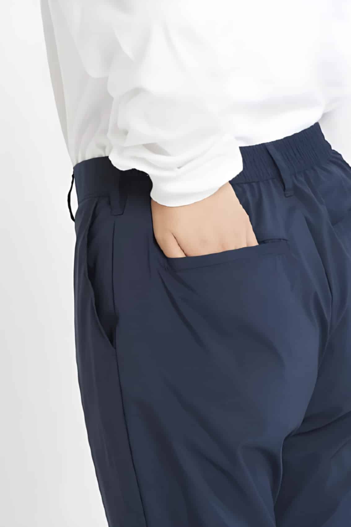 伸縮性と速乾性に優れた履きごこち抜群のキレイめパンツ。 スラックス風の見た目とシルエットながらストレッチドライ素材のアクティブウェアなので、飲食店や介護施設のユニフォームとしてもおすすめです。 ウエスト背面のゴム仕様がベルト要らずで快適に着用できます。※在庫限り販売終了