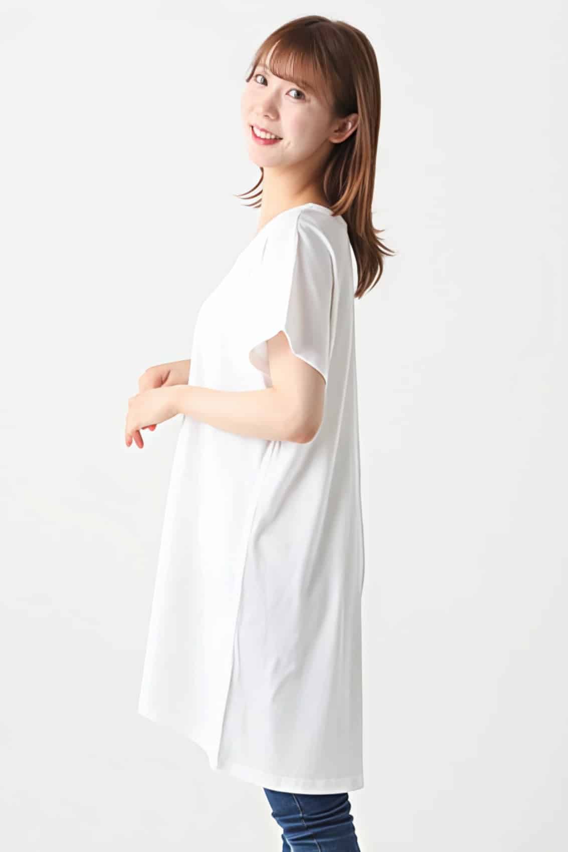 ゆったりとした袖がかわいらしさを演出するドルマンTシャツ(DM4350)のチュニックバージョンです。長めの丈でスキニーやデニムパンツ、スカートなど、どのアイテムにも合わせやすく、インして着こなすことができるのも魅力です。落ち着いた色味のカラー展開なので幅広い年代の方におすすめです。綿素材でとても軽くて柔らかい着心地のチュニックです。おしゃれなカフェや飲食店のユニフォームにぴったりです。