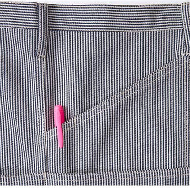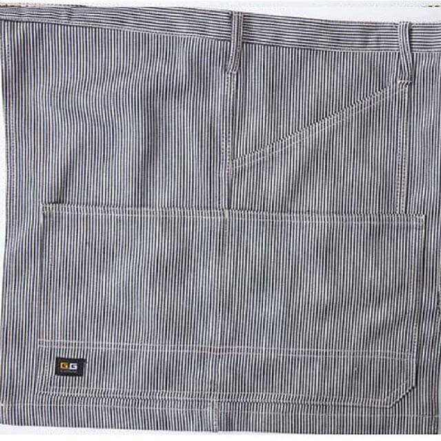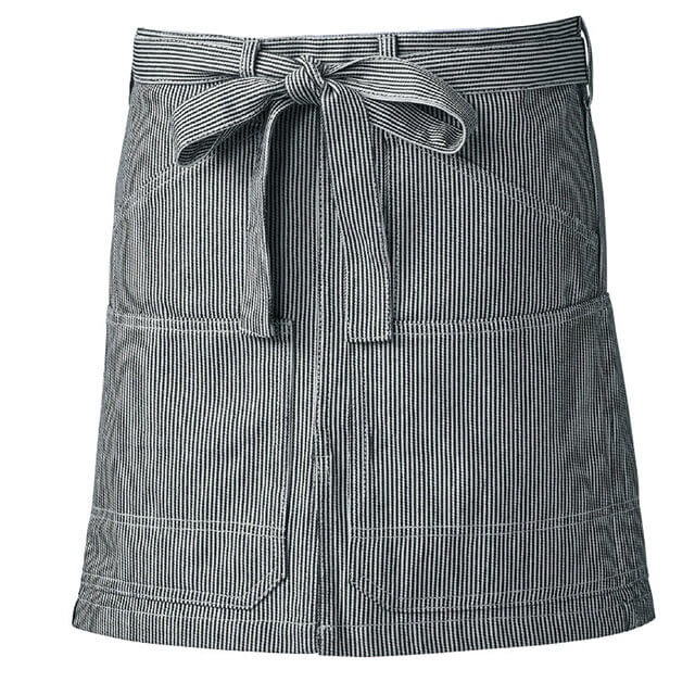 10120 | SOWA厚手のストライプ生地を使用したおしゃれなショートエプロンです。綿100%素材で耐久性に優れていて、飲食店だけではなくDIYや園芸用など用途を問わずに使えます。センタースリットが入っているので、動きにくさを軽減できるようになっています。また、ペン差しや多収納のポケットが付いているので、収納力、実用性ともにバツグンです。