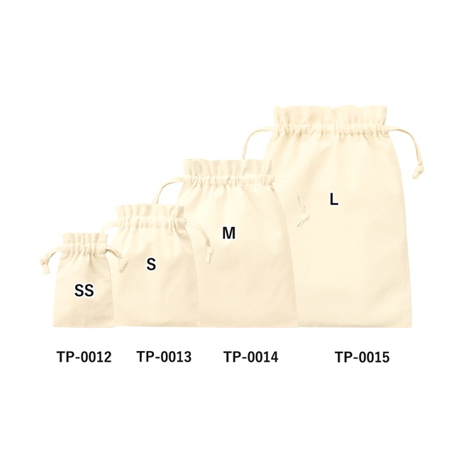 ベーシックで使いやすい5オンスのコットン巾着。定番のシンプルなデザインながら、ひもをきゅっと縛るとフリルのようになるデザインがかわいいです。ひも部分も本体と同じ生地を使用しており、高級感のある印象を与えます。サイズは全部で4つご用意。SSサイズはリップやイヤホンなど小物入れとして普段使いにも便利です。オリジナルロゴやキャラクターをプリントして物販品やノベルティ、ギフト用巾着としても喜ばれるアイテムです。