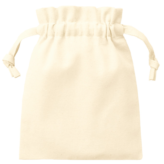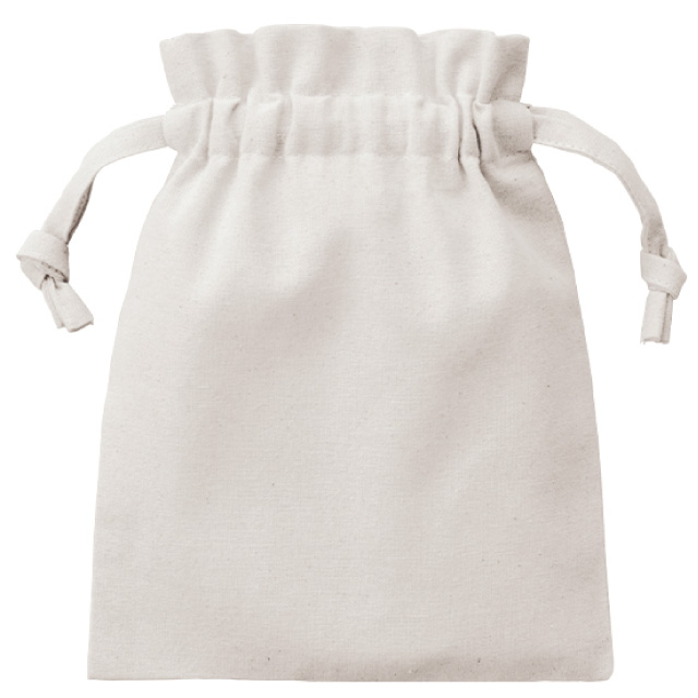 ベーシックで使いやすい5オンスのコットン巾着。定番のシンプルなデザインながら、ひもをきゅっと縛るとフリルのようになるデザインがかわいいです。ひも部分も本体と同じ生地を使用しており、高級感のある印象を与えます。サイズは全部で4つご用意。Sサイズはちょっとした小物入れや、詰め合わせギフト用袋、ホテルや旅館のアメニティ入れにもぴったりです。オリジナルロゴやキャラクターをプリントして物販品やノベルティにも使えるアイテムです。