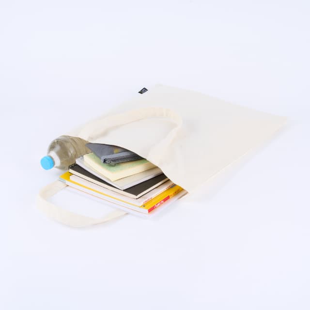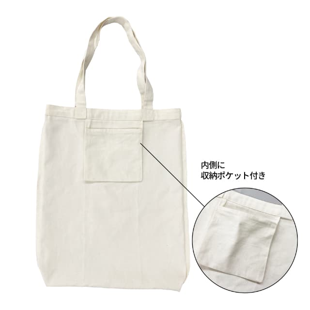 ST2102 | SLOTHやわらかな再生コットンを使用した、コンパクトで持ち運びに便利なトートバッグ。内側の収納ポケットに折りたたんで小さくすることができるので、バッグに忍ばせておけばお買い物の際のサブバッグとしても活躍します。バッグの製造過程で水や染料、化学薬品を使用しておらず、二酸化炭素の排出削減にも貢献しています。用途に合ったデザインを入れて素敵なバッグをつくってみませんか。