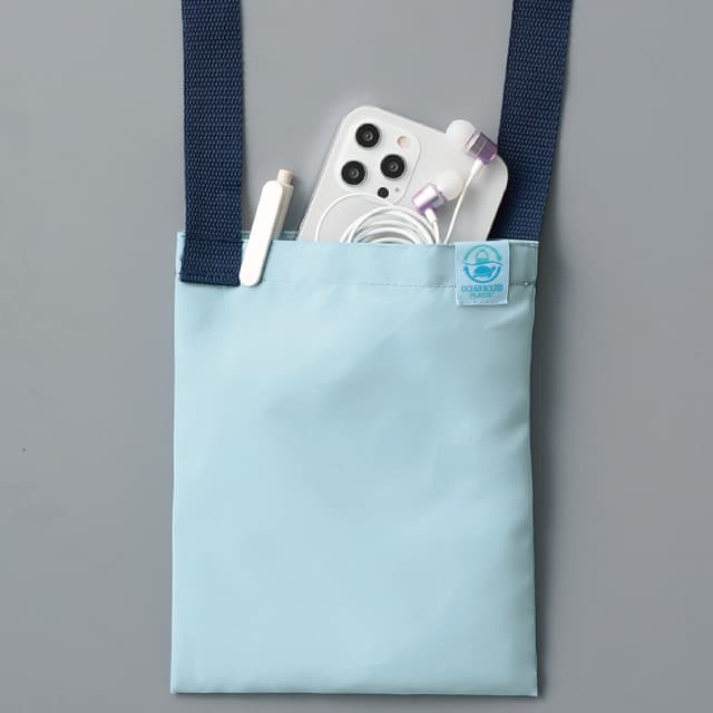 TR-1372 | MARKLESS STYLE「OBP」を使用した、環境にやさしい再生ペットボトルから作られたバッグです(OBPとは「オーシャンバウンドプラスチック」の略称で、海岸から約50km以内の内陸部で放置されているプラスチックごみを再利用した、今注目の素材です)。海をイメージさせる3色をご用意しました。サコッシュはスマホショルダーとしてもぴったりのサイズ。ちょっとした外出やイベントなどにおすすめです。使う機会の多い便利なサイズなので、イベント販促用として企業名やロゴをプリントすれば宣伝効果も抜群です!