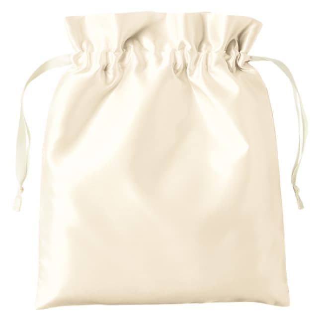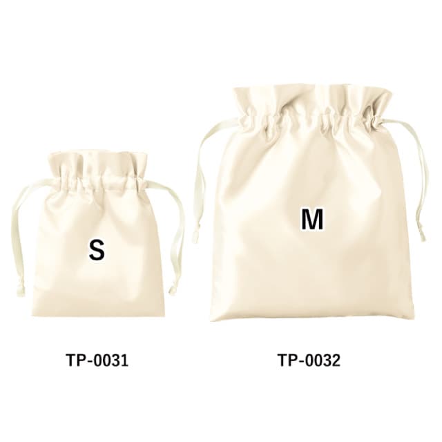 TP-0032 | MARKLESS STYLE光沢感のあるサテン素材を使用した巾着。口元はフリル形状で、ひも部分にもサテンリボンを使用しているため細部まで高級感ある仕様になっています。華やかな印象でギフト用としてもぴったりです。上品さやロマンティックな印象を与えるカラーをご用意。大きさはS・Mの2種類、Mサイズはハンドタオルやトラベルサイズのボトルなどを入れて頂くのに便利です。アパレルや雑貨店のオリジナルグッズとしてもイチ押しの商品です。