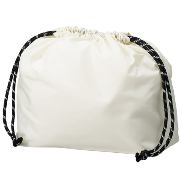 TP-0022 | MARKLESS STYLEしなやかでさらっとした手触りが特徴の、ポリエステル生地を使用した巾着ポーチ。カジュアルな印象を与えるコードひもがアクセントになっています。マチのある大きめサイズで収納力があるので、タオルやアメニティのほか、薄手の洋服なら1泊分をコンパクトに持ち運ぶこともできます。レジャーやアウトドア、旅行に持っていきたいポーチ。アウトドアショップやアパレルのお楽しみ袋に使っていただいてもおしゃれです。