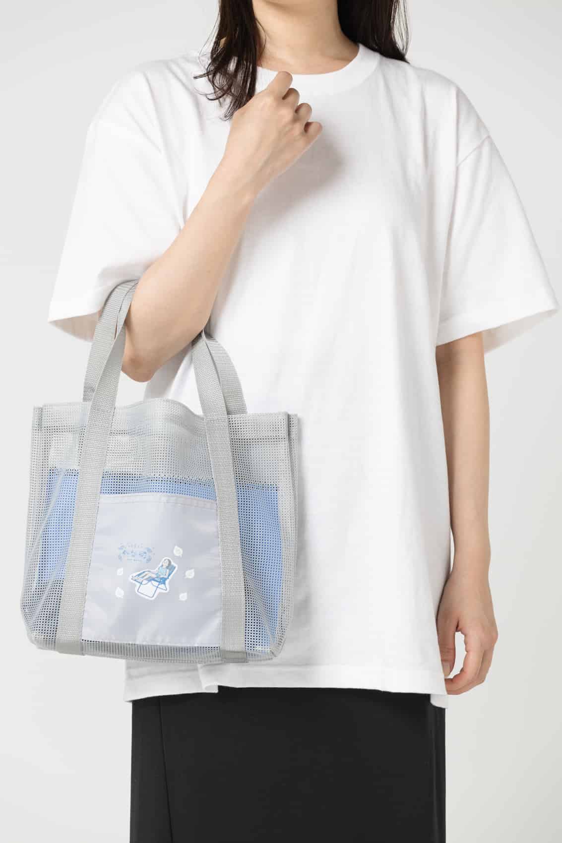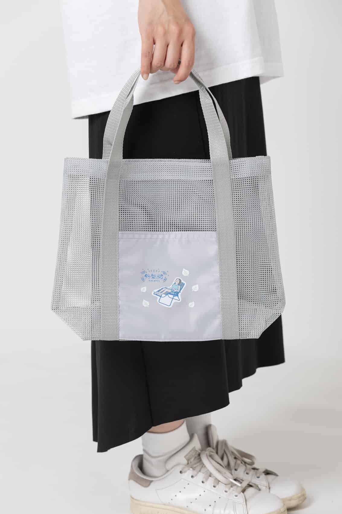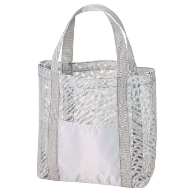 TR-1395 | MARKLESS STYLEメッシュ素材がポイントのトートバッグ。軽やかな素材でプールなどのレジャーや、人気のサウナバッグとしてもおすすめです。外ポケット付きでスマートフォンなどをいれておくのにも便利な仕様になっています。M・Lの2サイズ展開で、Mサイズはペットボトルが入る、お散歩やお子様とのちょっとしたお出かけにもちょうど良い大きさです。ポケット部分にプリントができますので、オリジナルのデザインを入れてお出かけしませんか。