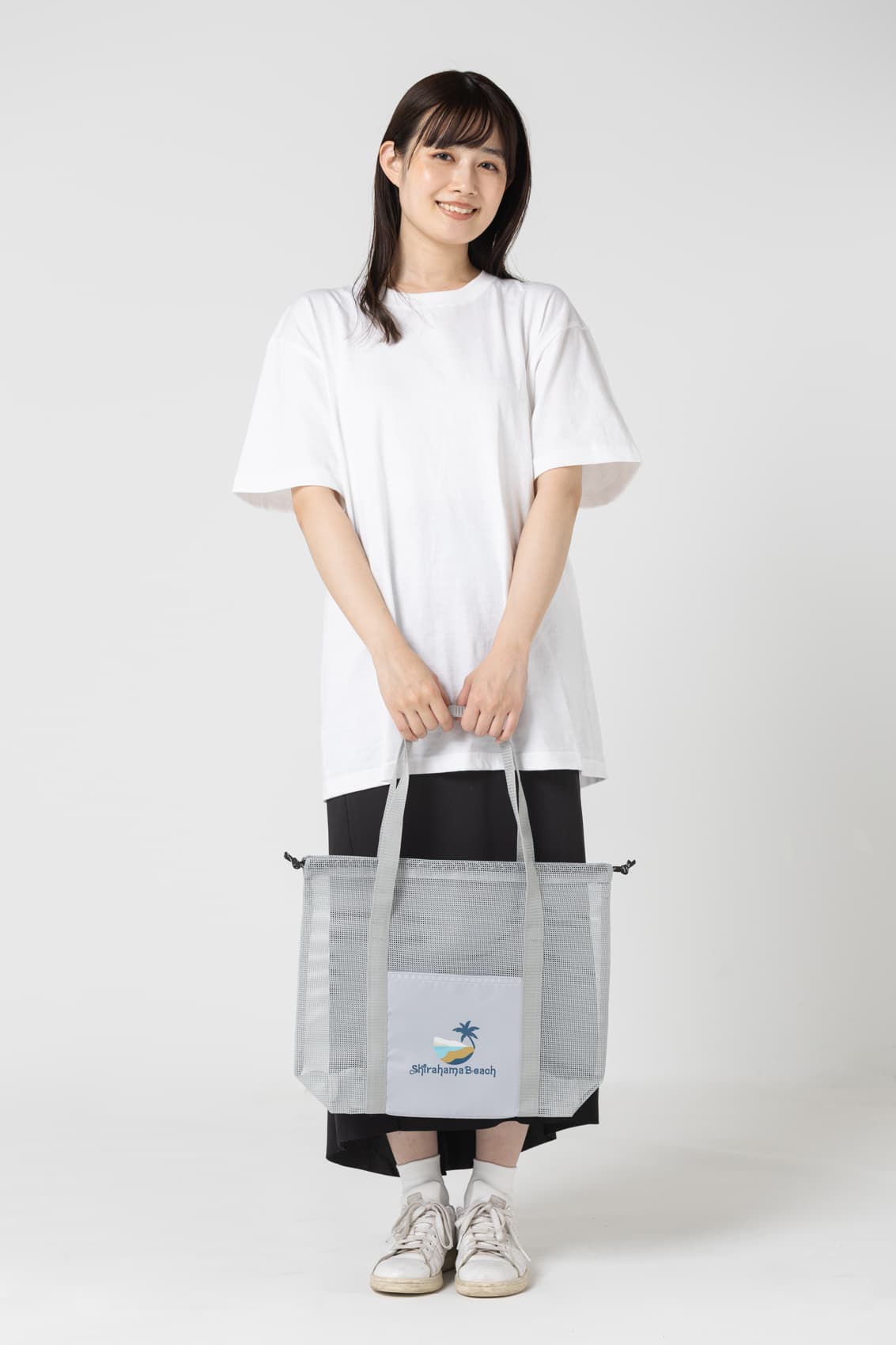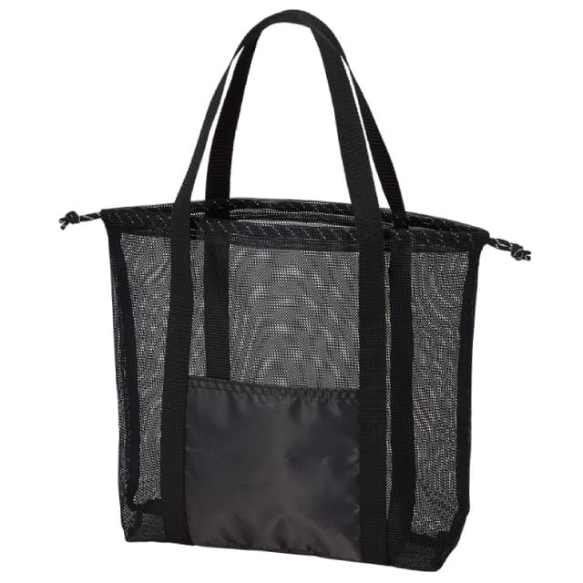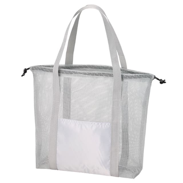 TR-1396 | MARKLESS STYLEスポーツやジム通いの際にも最適な、メッシュ素材がポイントのトートバッグです。A4が入る大きさで、口元が絞れる巾着タイプ。かがんだ時に中身が飛び出すことを防げます。外ポケット付きでスマートフォンなどをいれておくのにも便利です。M・Lの2サイズ展開で、Lサイズはフェイスタオルや着替え、500mLペットボトルなどを入れることができます。プールなどのレジャーシーンや、カジュアルな普段使い用としてもおすすめです。