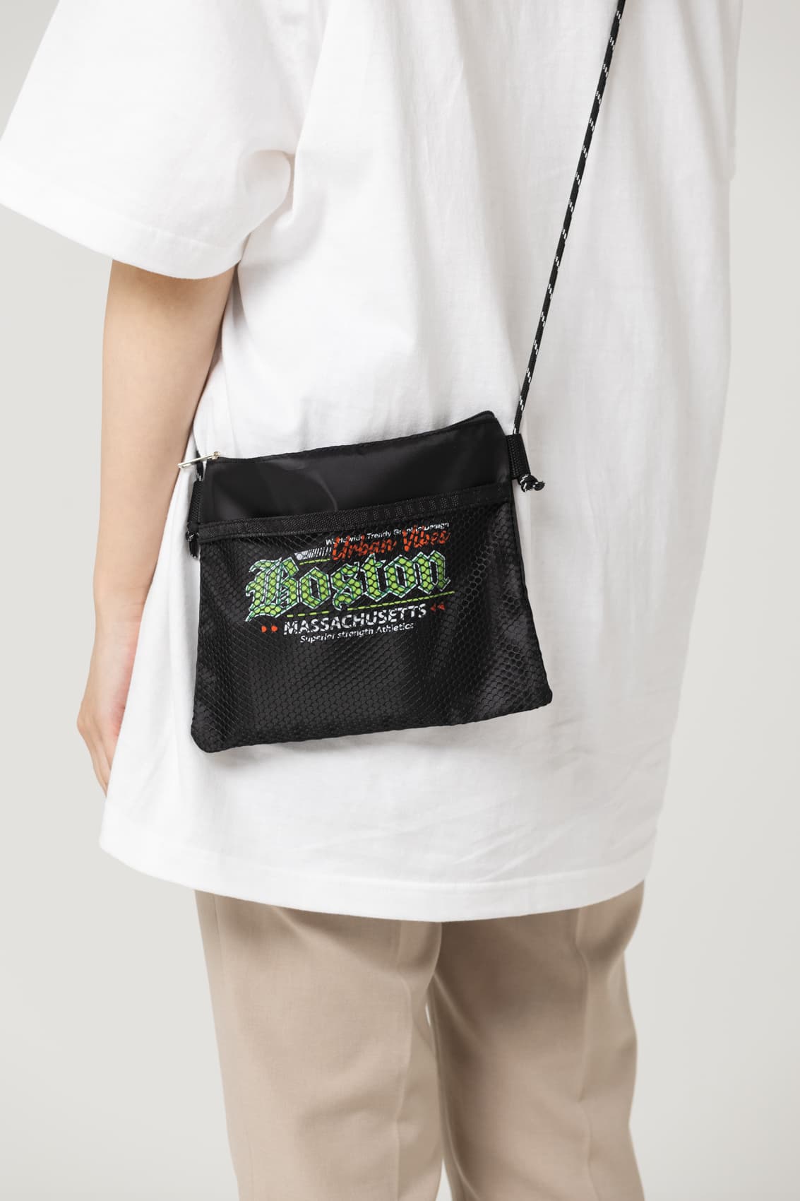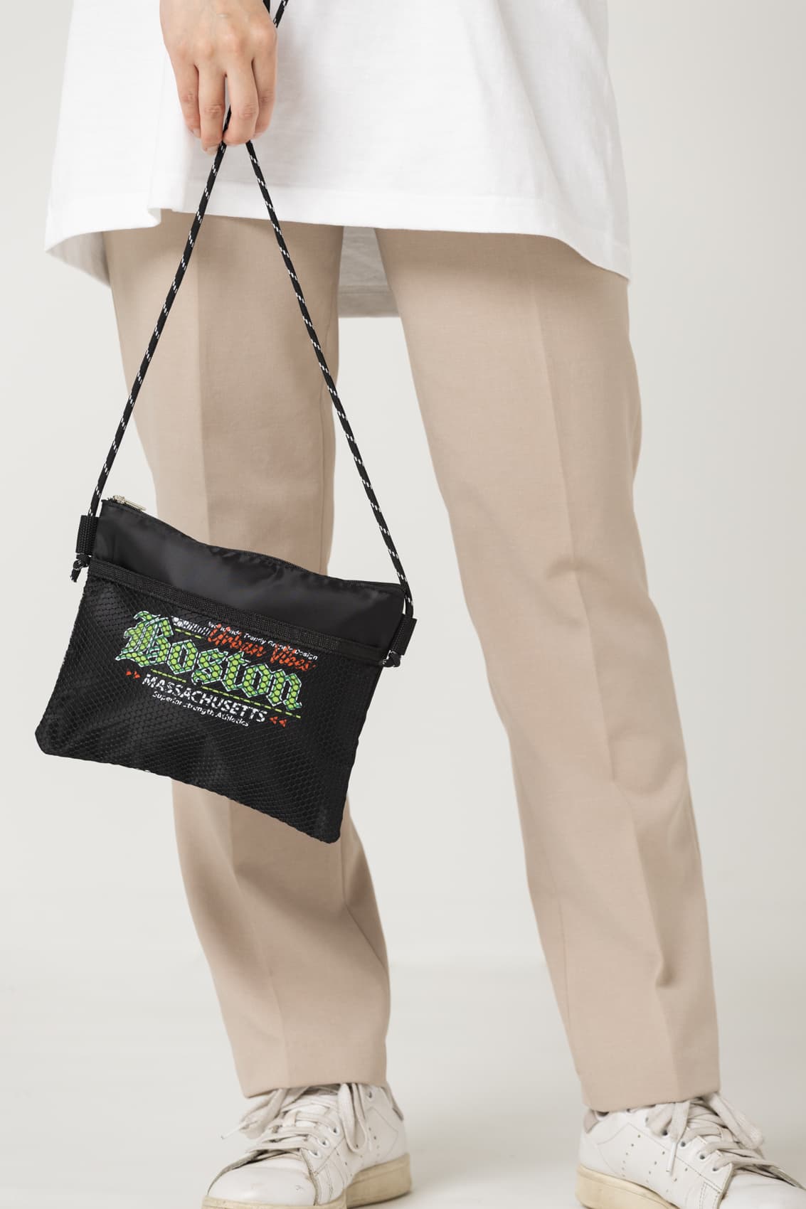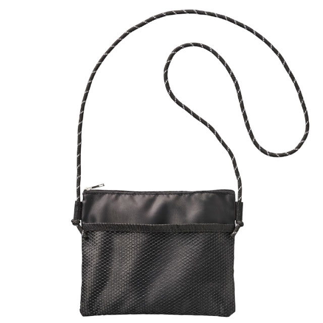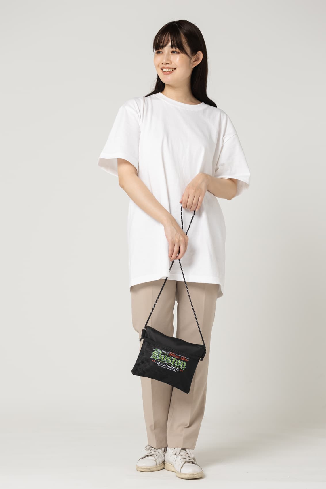 TR-1397 | MARKLESS STYLEメッシュポケットが付いたサコッシュです。旅行やライブへ行く際チケットなどを入れるのにぴったりなサイズで、ファスナー付きなので貴重品など安心して入れることができます。ひも部分は結び目の位置を変えることで簡単に長さ調節が可能。スポーティーなデザインで、アウトドアブランドや野外イベントのノベルティや物販用としてもおすすめです。おもて面へのプリントも可能!メッシュポケットをうら面側へひっくり返せば、ポケットの裏にプリントされたようなおしゃれな仕様になります。