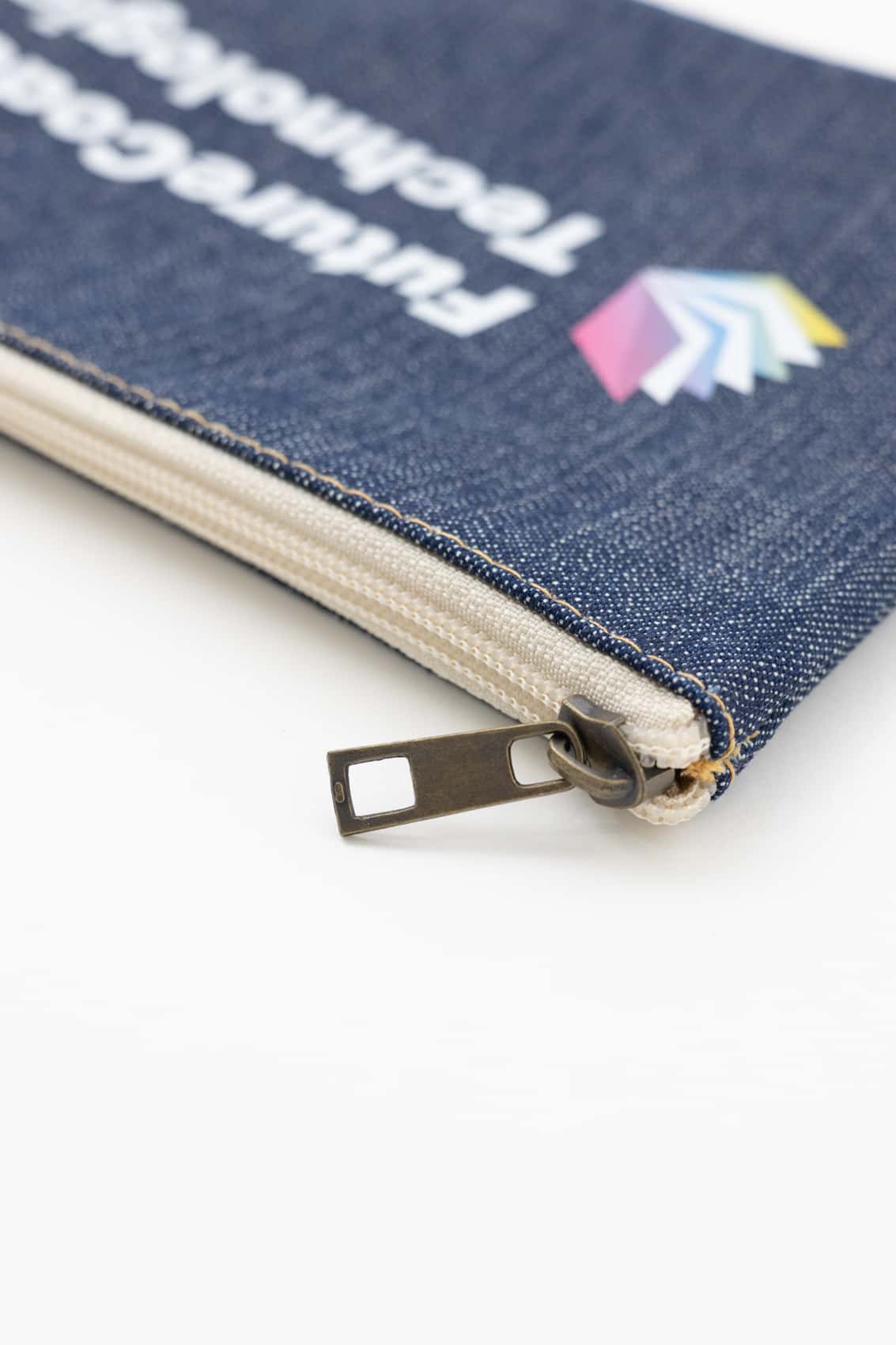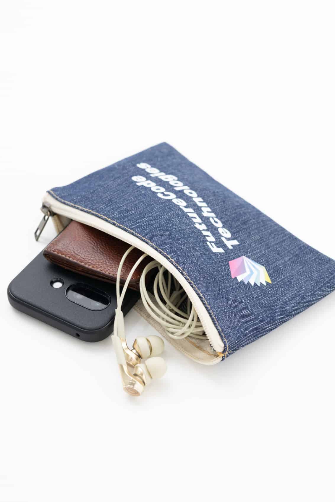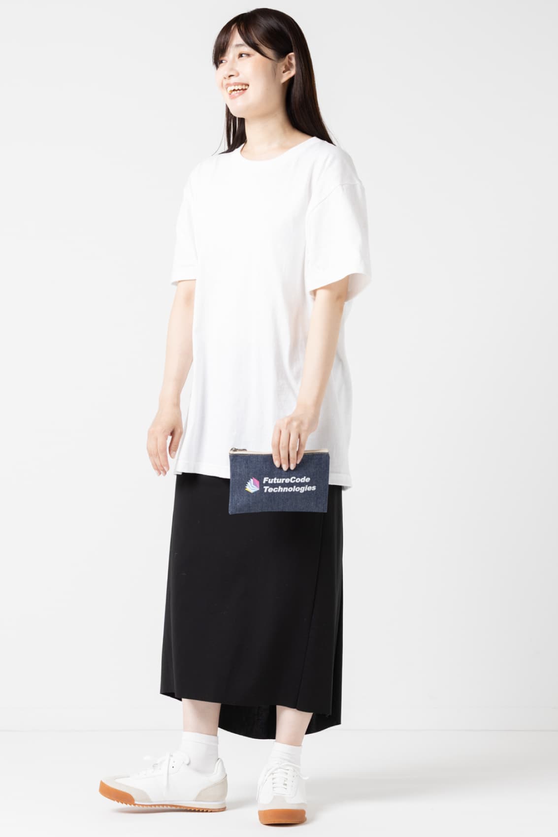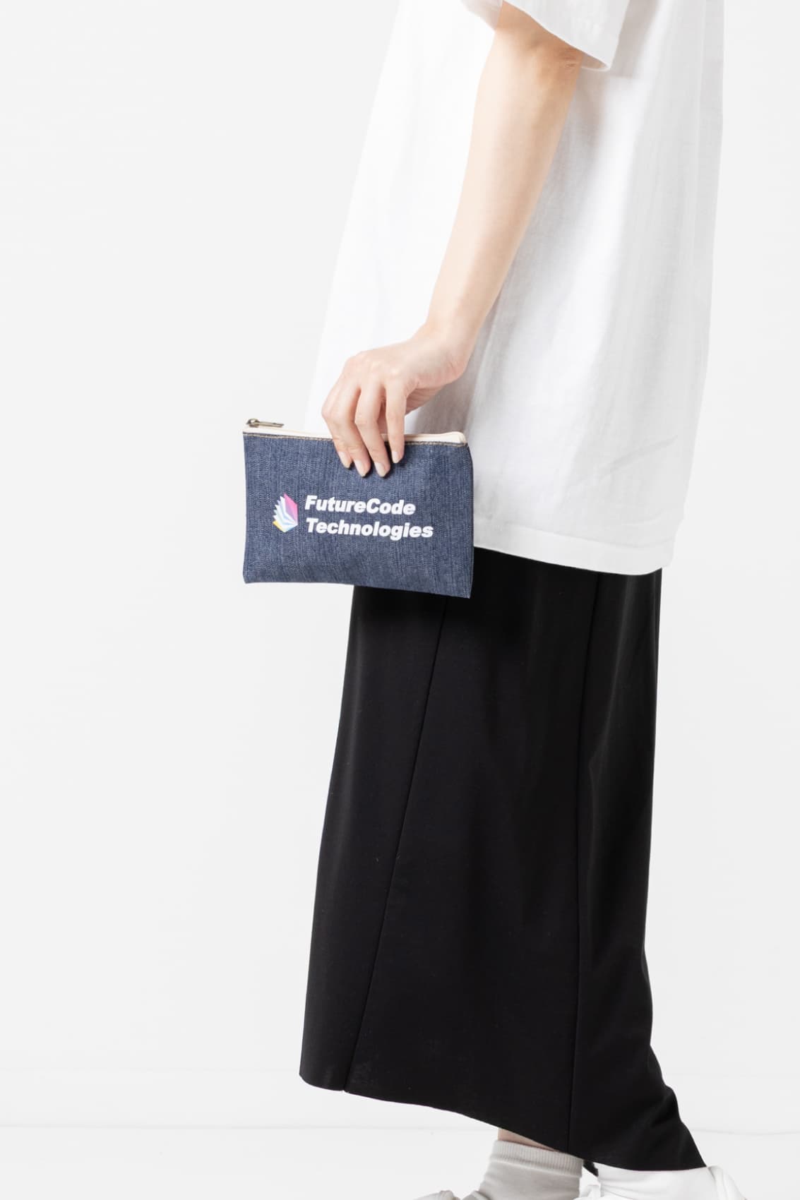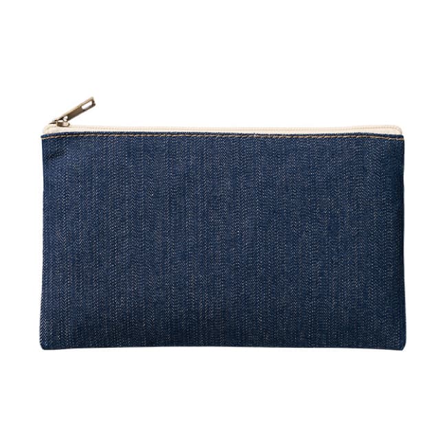幅広い目的にお使いいただける、カジュアルな印象のデニムポーチ。マチの無いフラットタイプで、濃いインディゴカラーがデザインを際立たせます。展示会やイベントの配布アイテムとして、アパレルブランドや雑貨ブランドのプロモーション用などにもおすすめです。サイズはSS・S・Mの3つをご用意。Sサイズは横型で、ペンケースやコスメポーチなどにも便利なサイズになっています。各サイズとも同じデザインを用いて、グッズのシリーズ販売にも最適な商品です。
