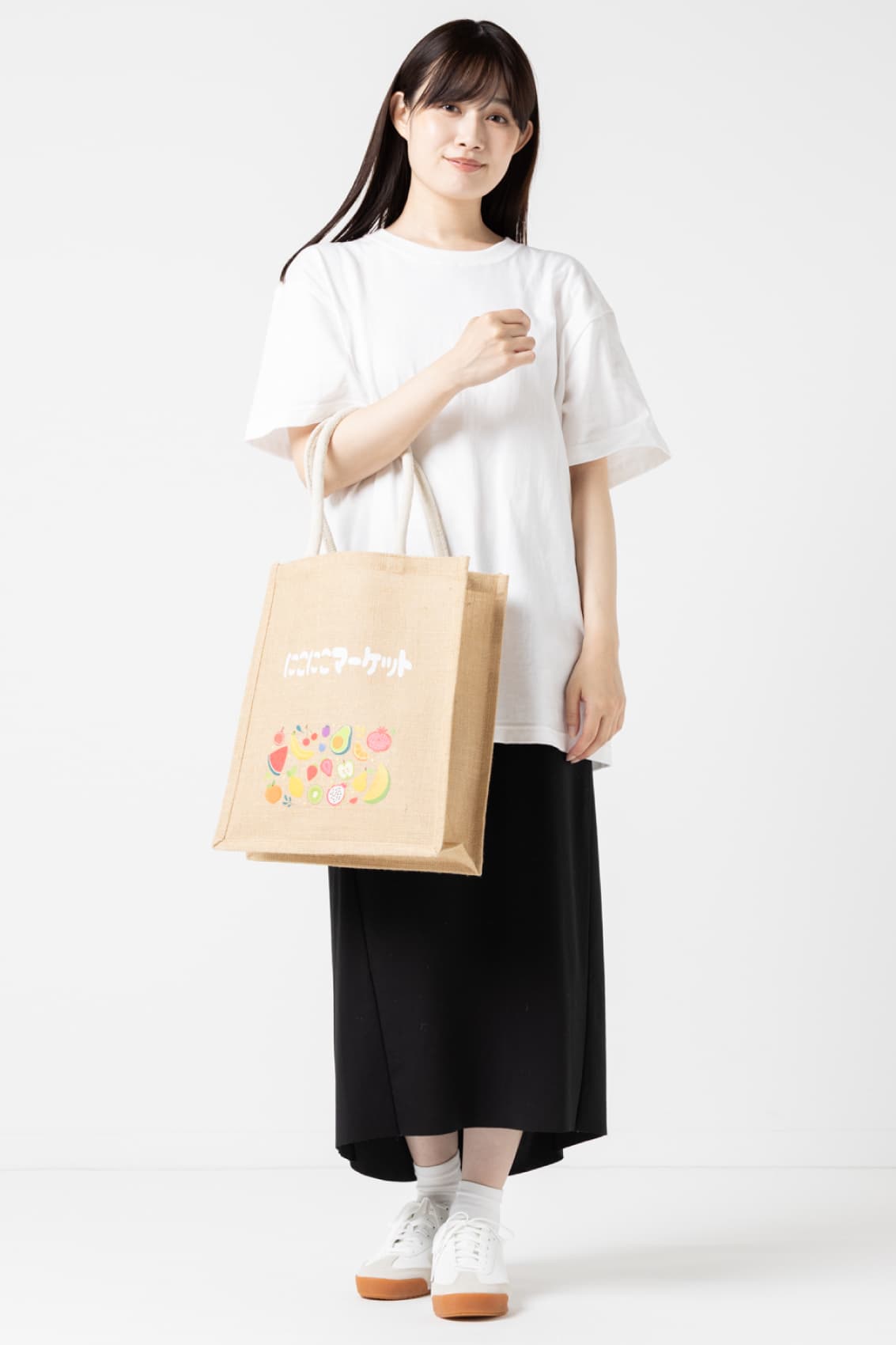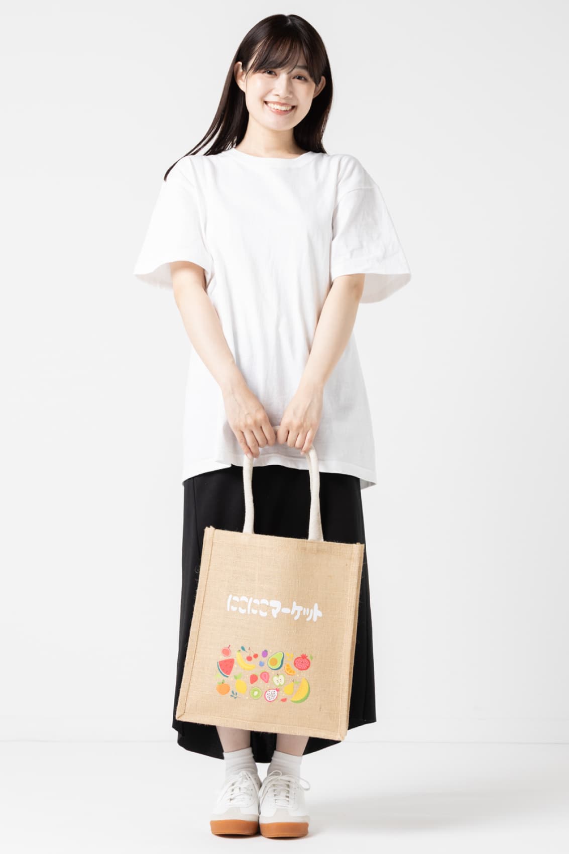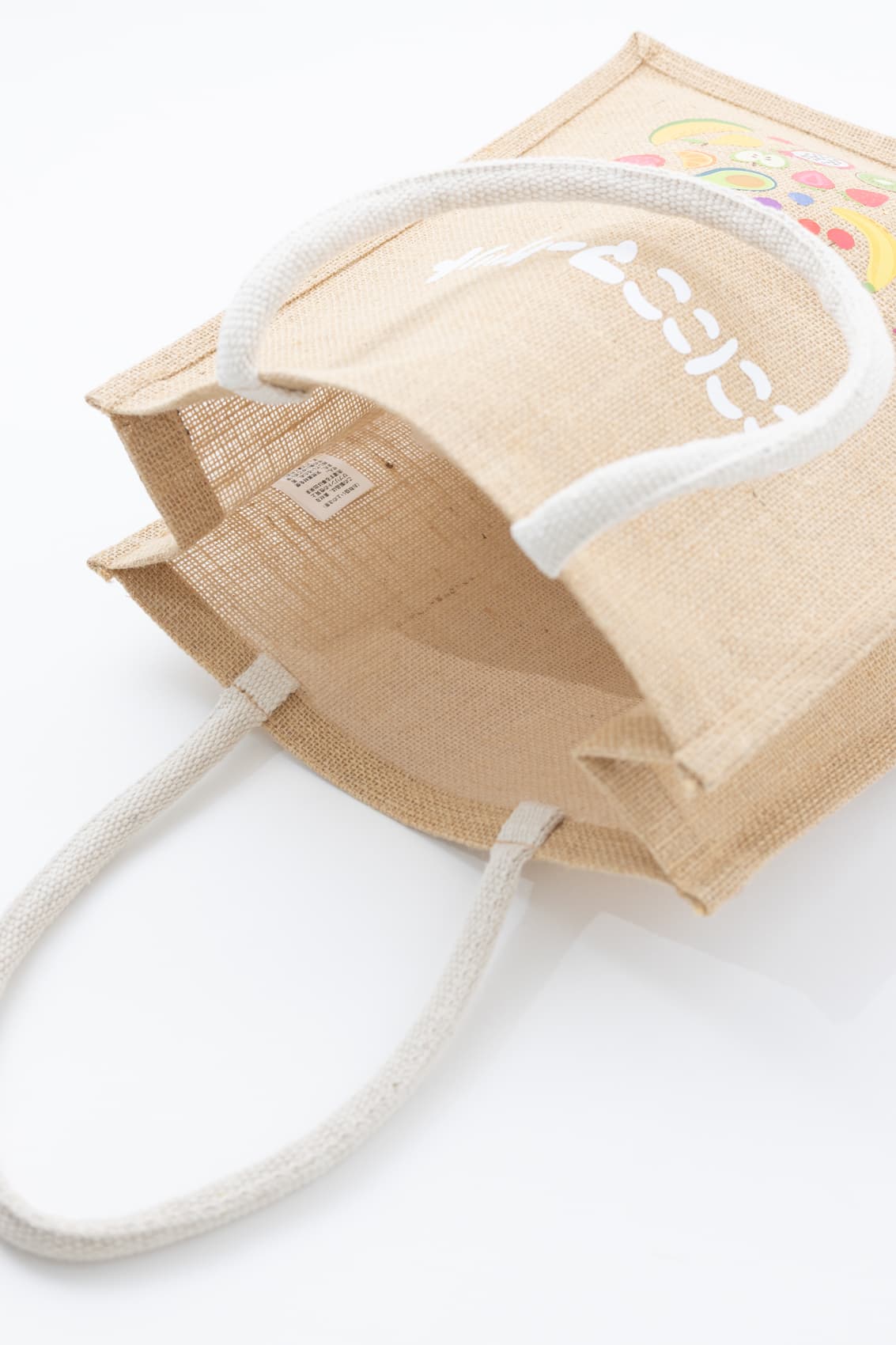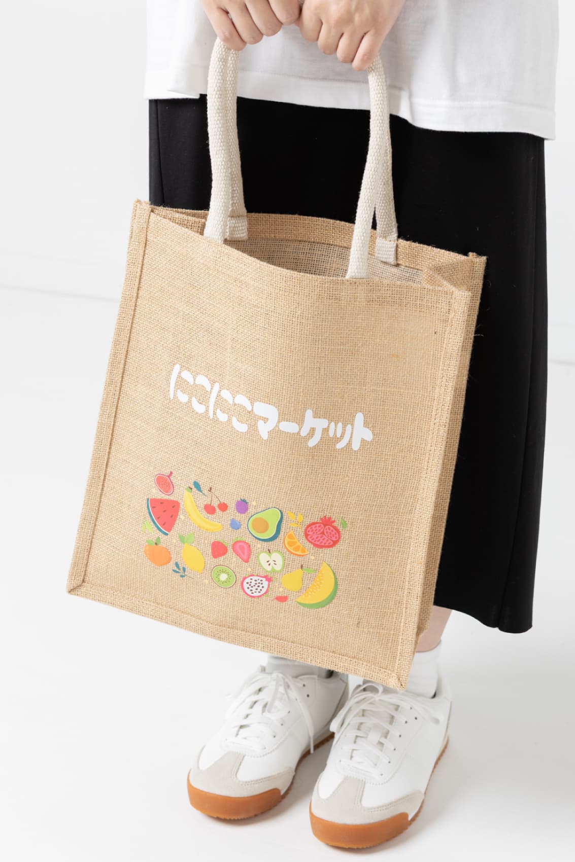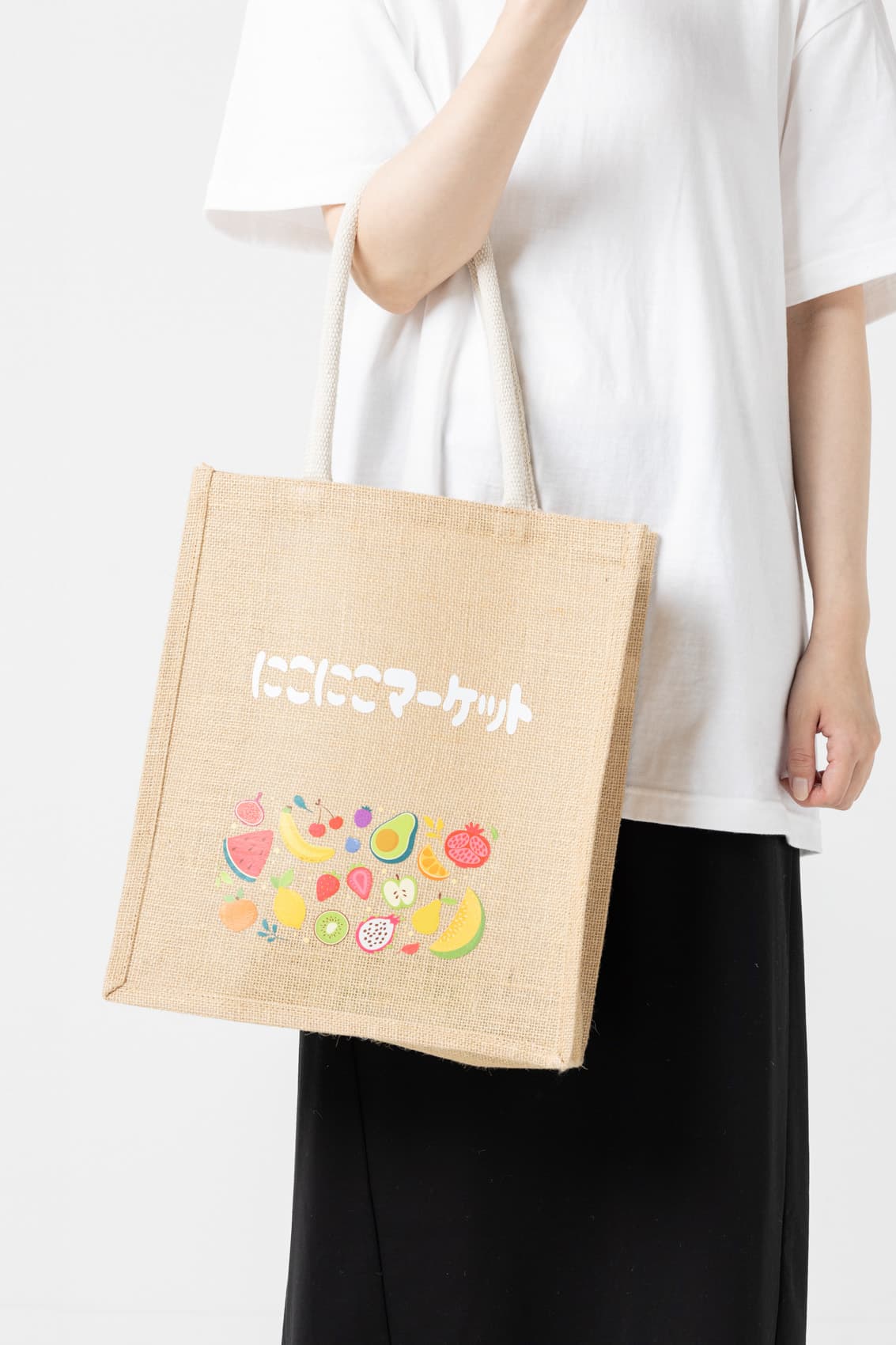 TR-1398 | MARKLESS STYLE大人気ジュートシリーズにMLサイズが仲間入りしました!おしゃれな印象を与える天然素材のジュートはアパレルショップのノベルティや購入特典、高級感のあるショッパーとして、またオーガニック食材など食料品店での販促品としてなど、幅広い用途でお使いいただけます。形はタテ長とヨコ長(品番:TR-1399)の2種類でご用意。こちらのタテ長タイプはA4が入るサイズ感となっており、ワインボトルなど高さのあるものも入ります。持ち手は肩掛けができる便利な長さで、お出かけやお買い物バッグとしてもぴったりです。刺繍も入れることができますので、プリントと組み合わせてデザインを入れていただいても素敵です。