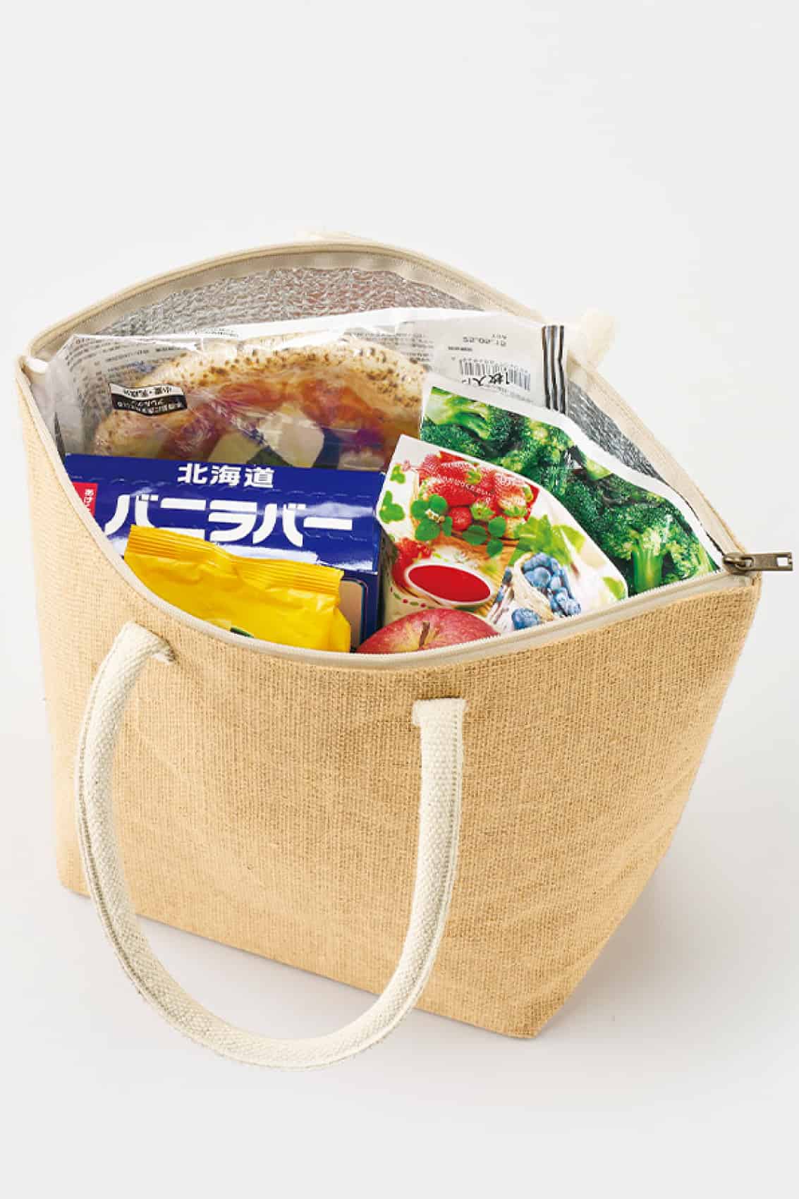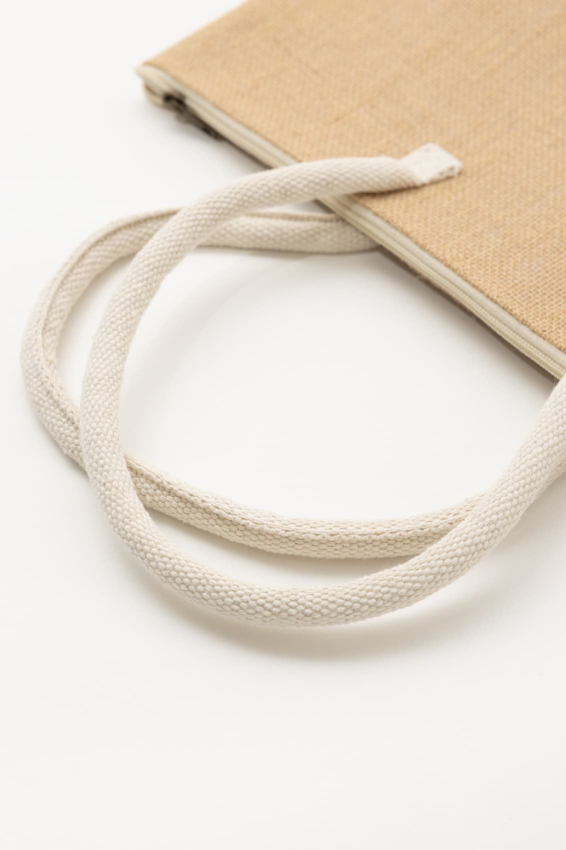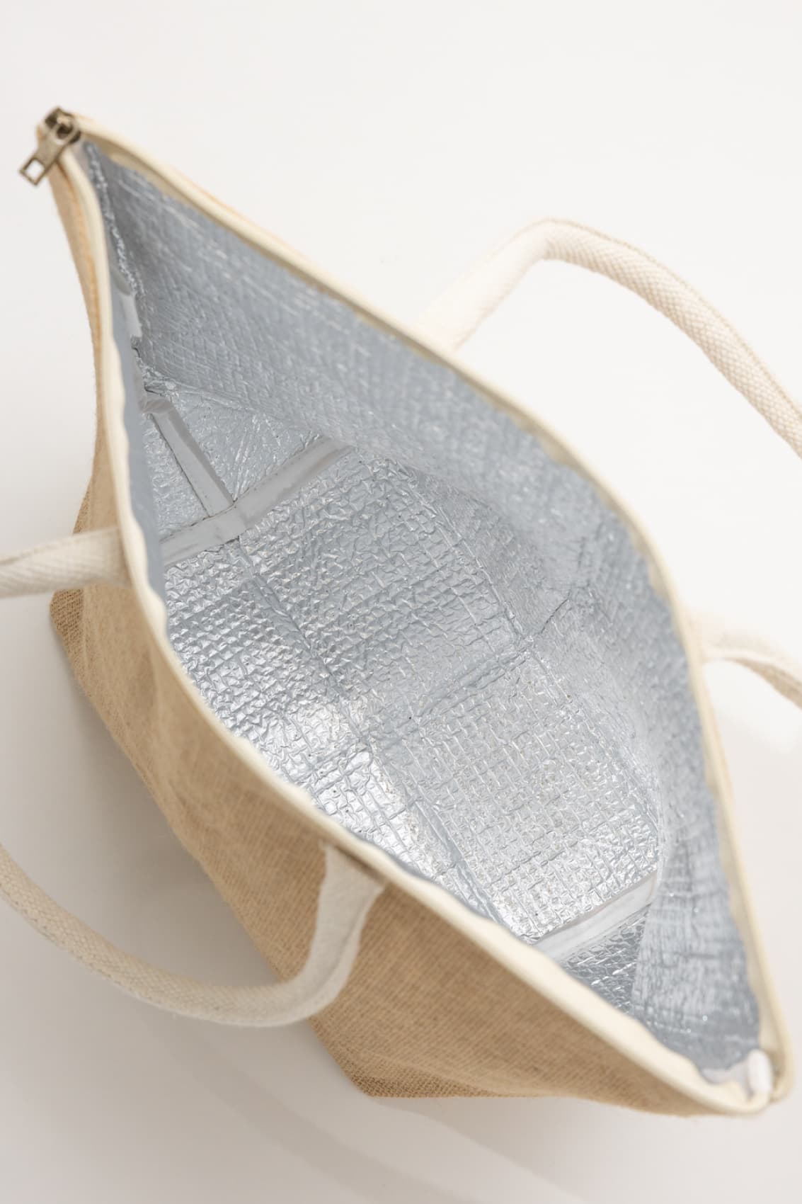TR-1406 | MARKLESS STYLEおしゃれでかわいい印象の、人気のジュート素材保冷バッグです。丸い持ち手が肩掛けした際にも負担なく持つことができます。おしゃれなオーガニック食材店や食料品店のオリジナルショッパーや、レジャー雑貨を扱うショップの販売用としてお使いいただくのにもおすすめです。サイズはS(品番TR-1222)・Mの2つをご用意。こちらのMサイズは食料品などたっぷりと入るサイズで、お買い物バッグやエコバッグとしてもたいへん便利です。最短翌日発送いたします!急なご注文もどうぞお任せください。