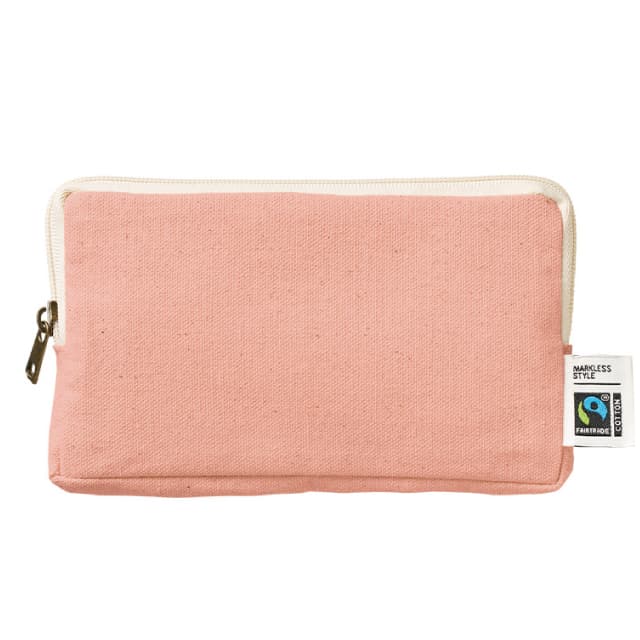 TP-0051 | MARKLESS STYLE環境と人に配慮した、フェアトレード認証のオーガニックコットンを使用したスクエアポーチです。カラーはやさしい雰囲気の全5色。S・M(品番:TP-0051)の2サイズ展開で、Mは横に長い仕様のためステーショナリーポーチなどにもぴったりです。文具や雑貨を取り扱っている企業ノベルティや販促アイテム、オリジナルグッズの作製にもおすすめです。2cmの絶妙なマチ幅があることで、小物がすっきり収納できるところがうれしいポイント。コの字型のファスナーで口が大きく開き、奥まで中身を確認しやすいので、簡易的なお財布としても便利なポーチです。
