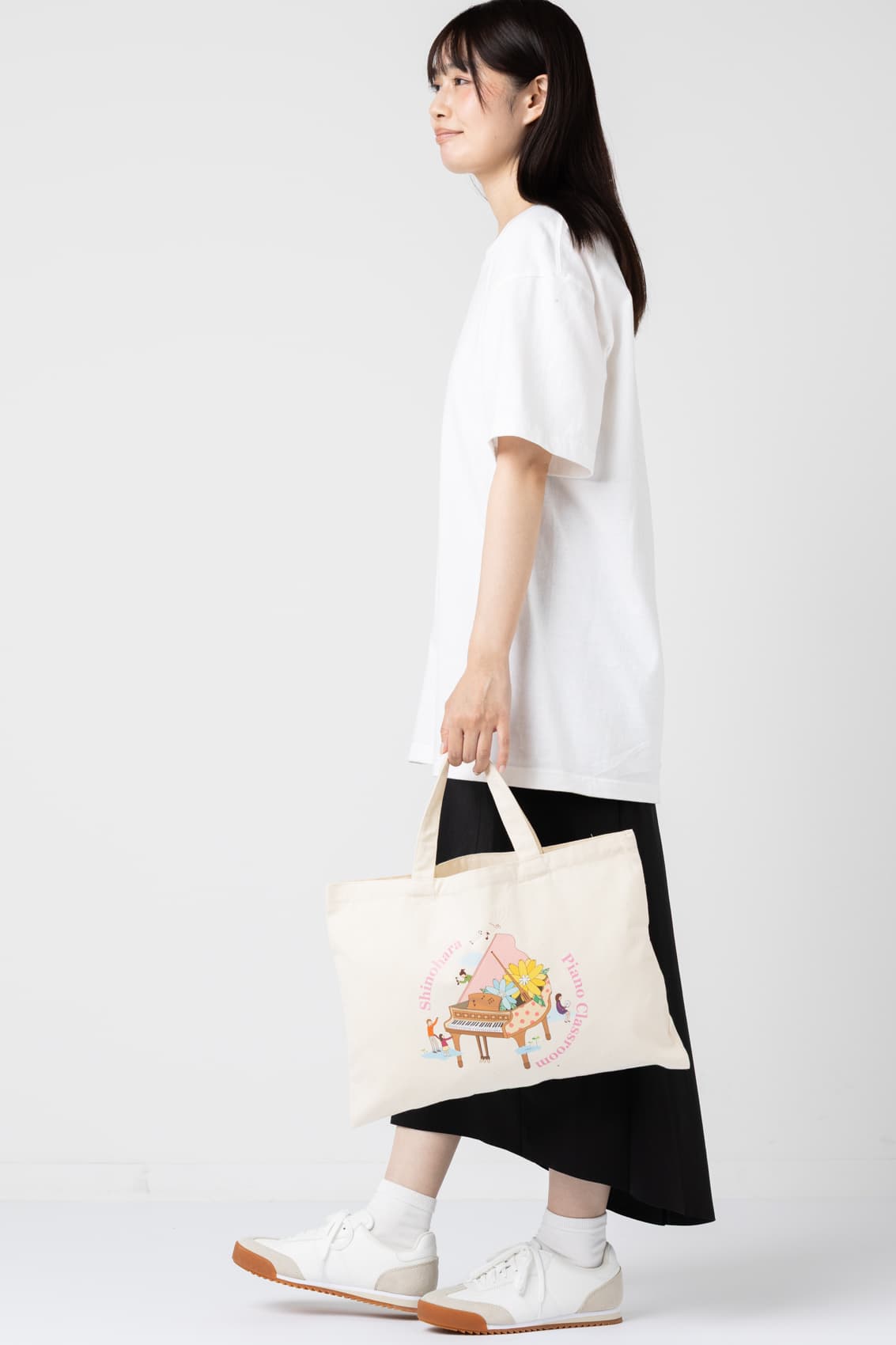 TR-1416 | MARKLESS STYLEシンプルな見た目と程よい厚みが魅力の、キャンバス生地を使用したレッスンバッグ。A4サイズのノートやファイルはもちろん、楽譜やスケッチブックもすっきり入ります。通園・通学はもちろんのこと習い事や講座、サークル活動の相棒としても荷物をスマートに持ち運びできます。マチのないフラットなデザインなので、折りたたんでお手持ちのバッグにも収納が可能です。