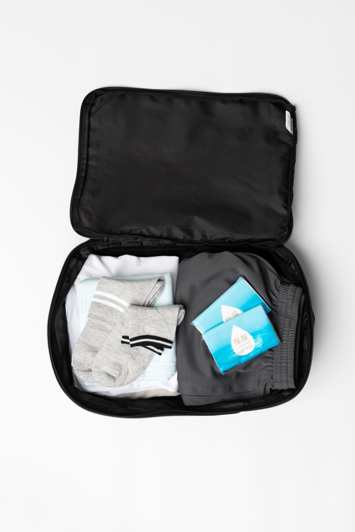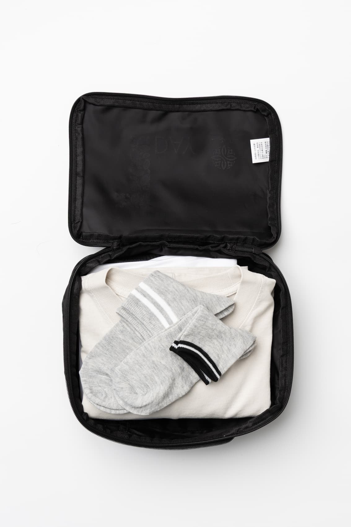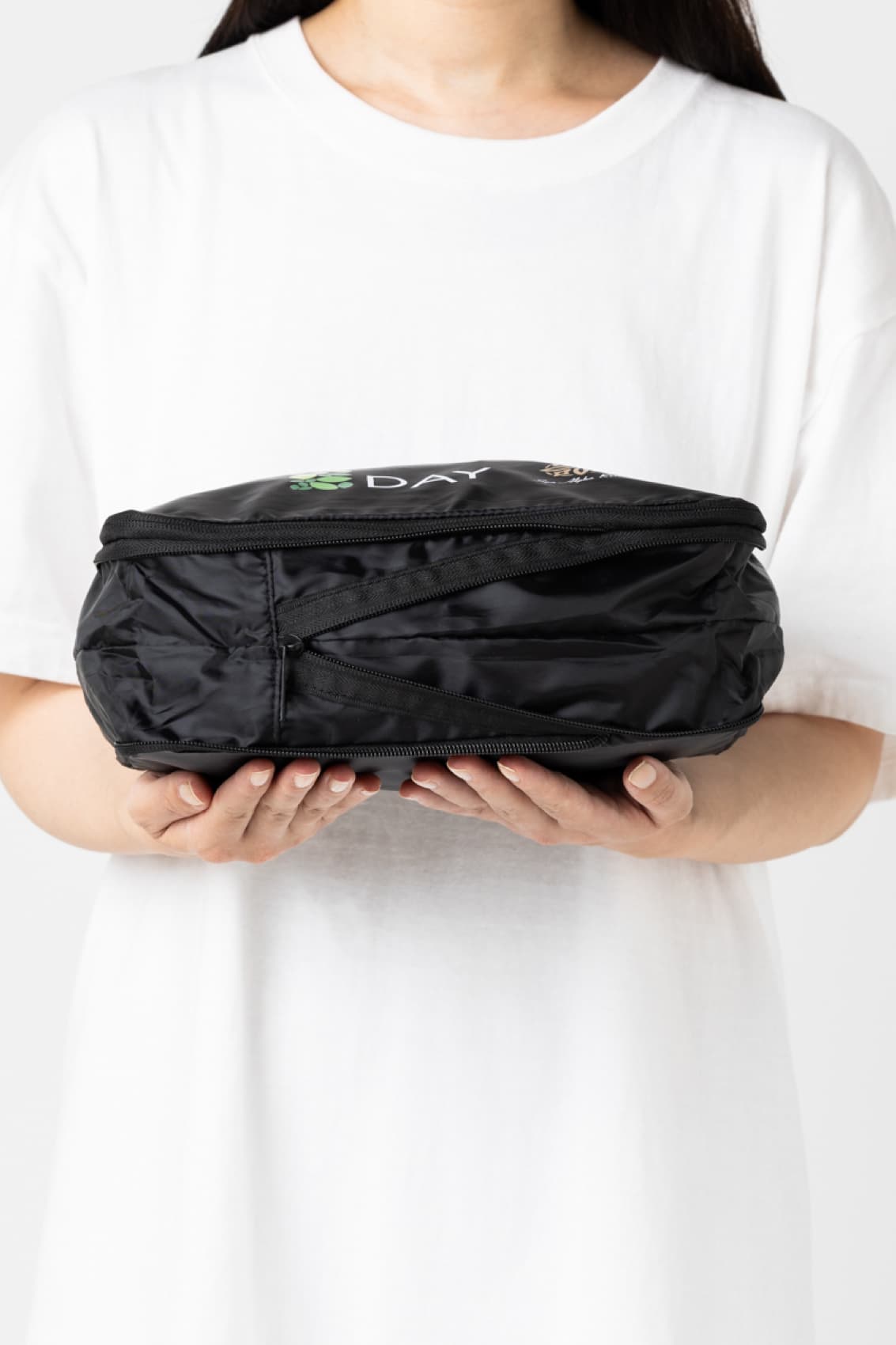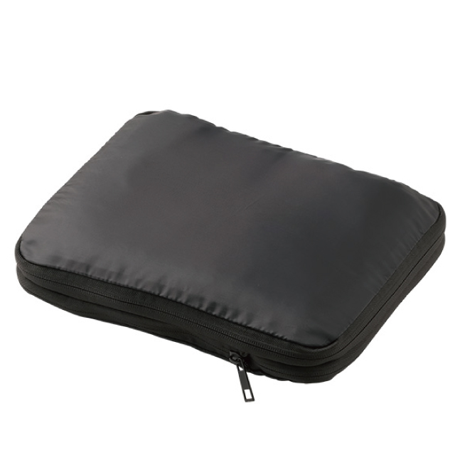 TP-0023 | MARKLESS STYLE出張や旅をスマートにする圧縮ポーチ。2カ所のファスナーで衣類をコンパクトに圧縮することで、荷物のかさばりを抑え旅行バッグのスペースを有効活用できます。旅行代理店や保険会社、レジャー関連の企業ノベルティ、旅のイベントプロモーション用として採用すれば、実用性の高さで喜ばれること間違いなし!Sサイズは夏から秋の1泊程度に最適な大きさです。