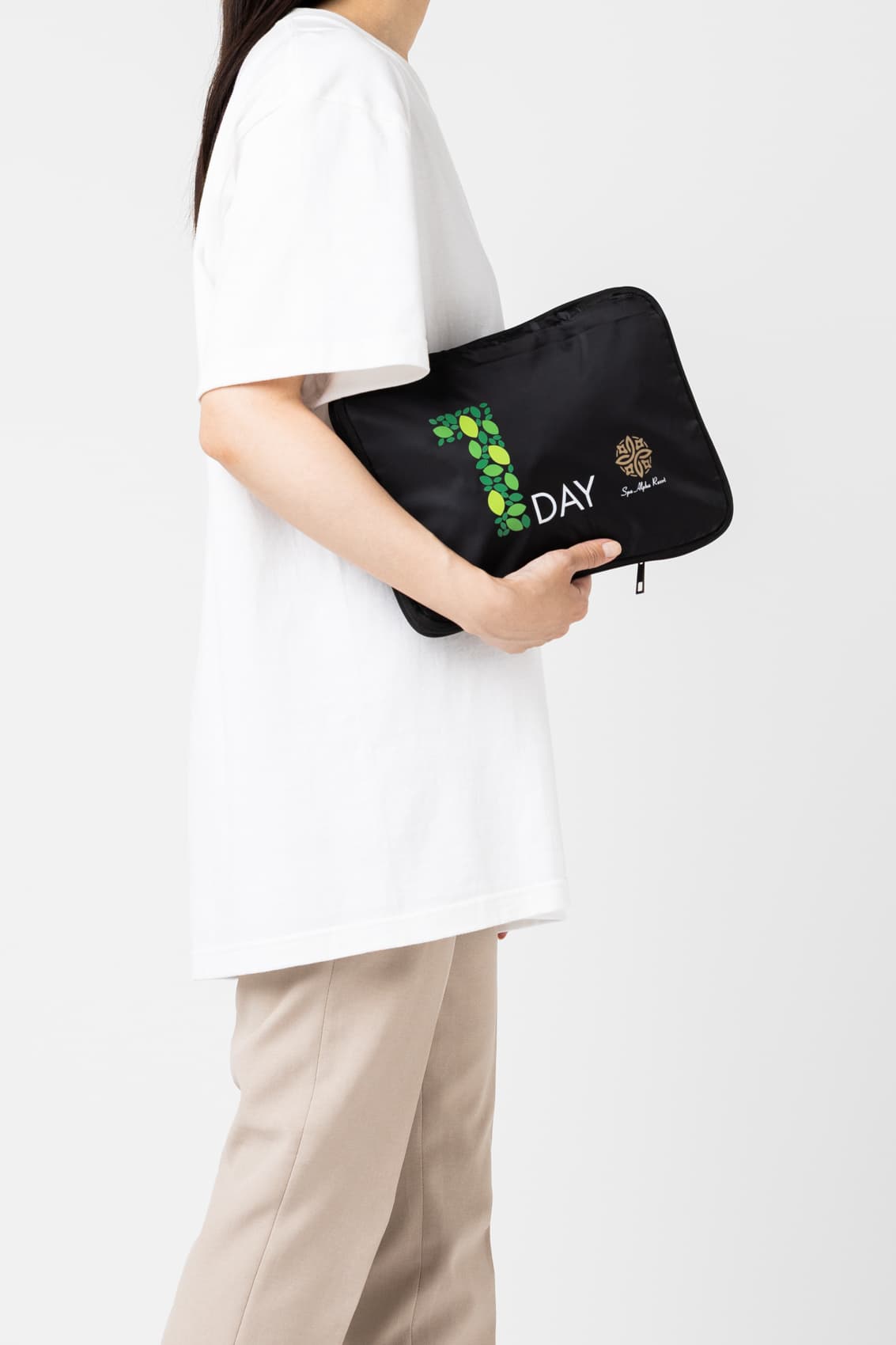 縦21.5×横23×底マチ10 本体:リサイクルポリエステル100% ストラップ:ポリエステル