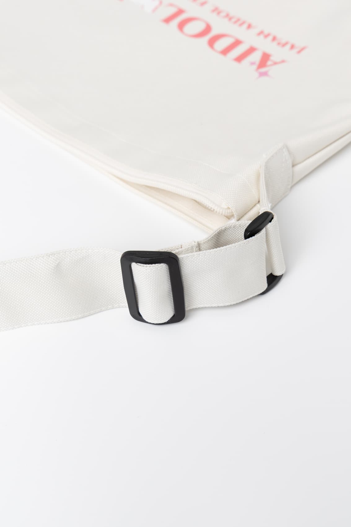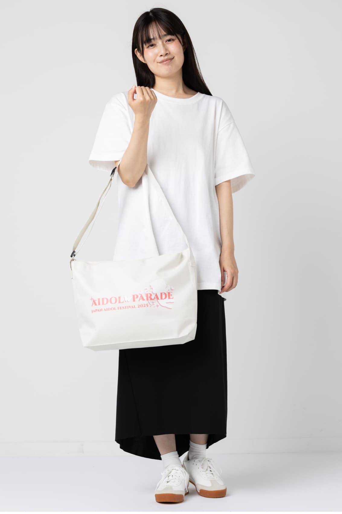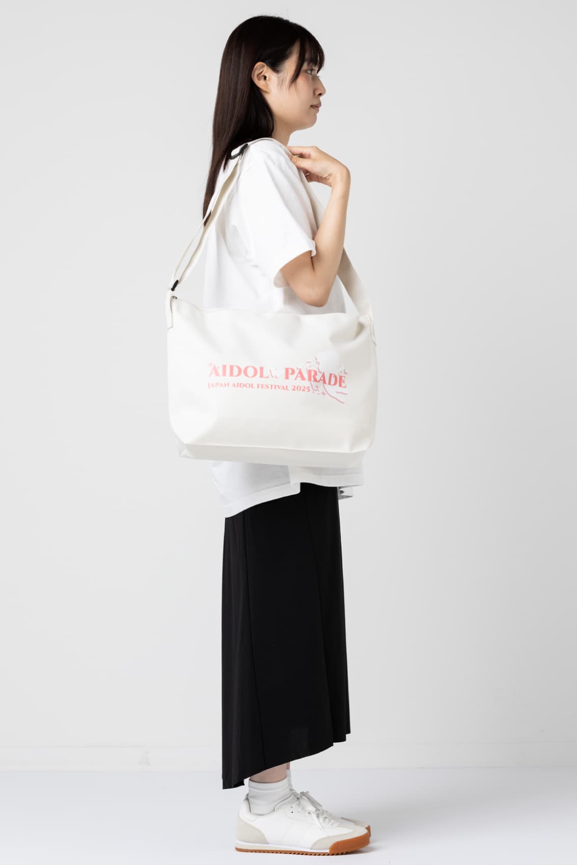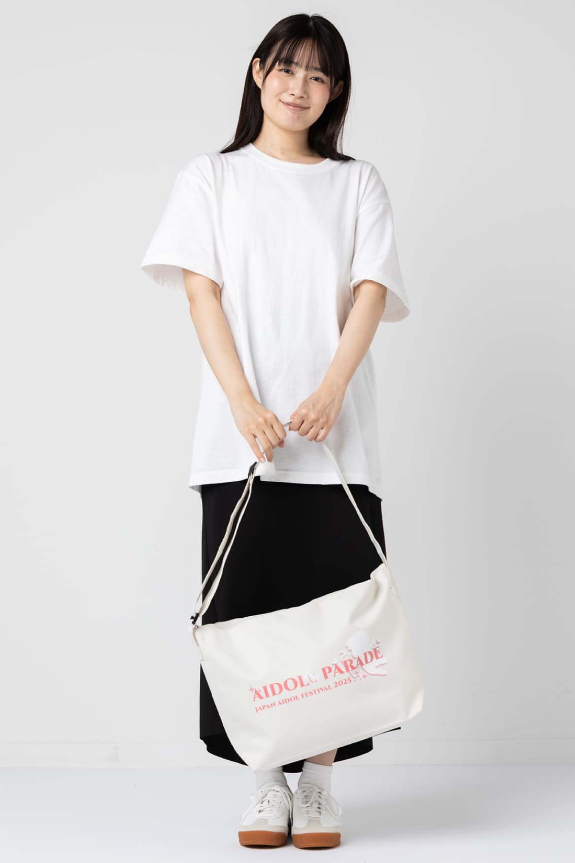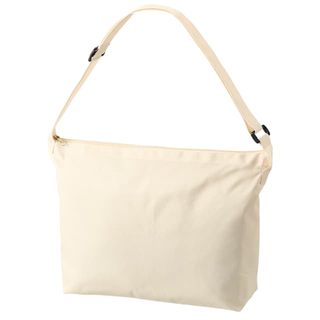 TR-1407 | MARKLESS STYLEポリエステル素材を使用したA4サイズの入るショルダーバッグです。プリントも映えるので、コミケやライブ、フェスなどのイベント物販やグッズ製作などにもおすすめの商品です。最大約110㎝まで伸びるショルダーひもは、アジャスターでお好みの長さに調節が可能。中身が飛び出さないファスナー付きで両手も空くので、荷物が多いときにも便利です。