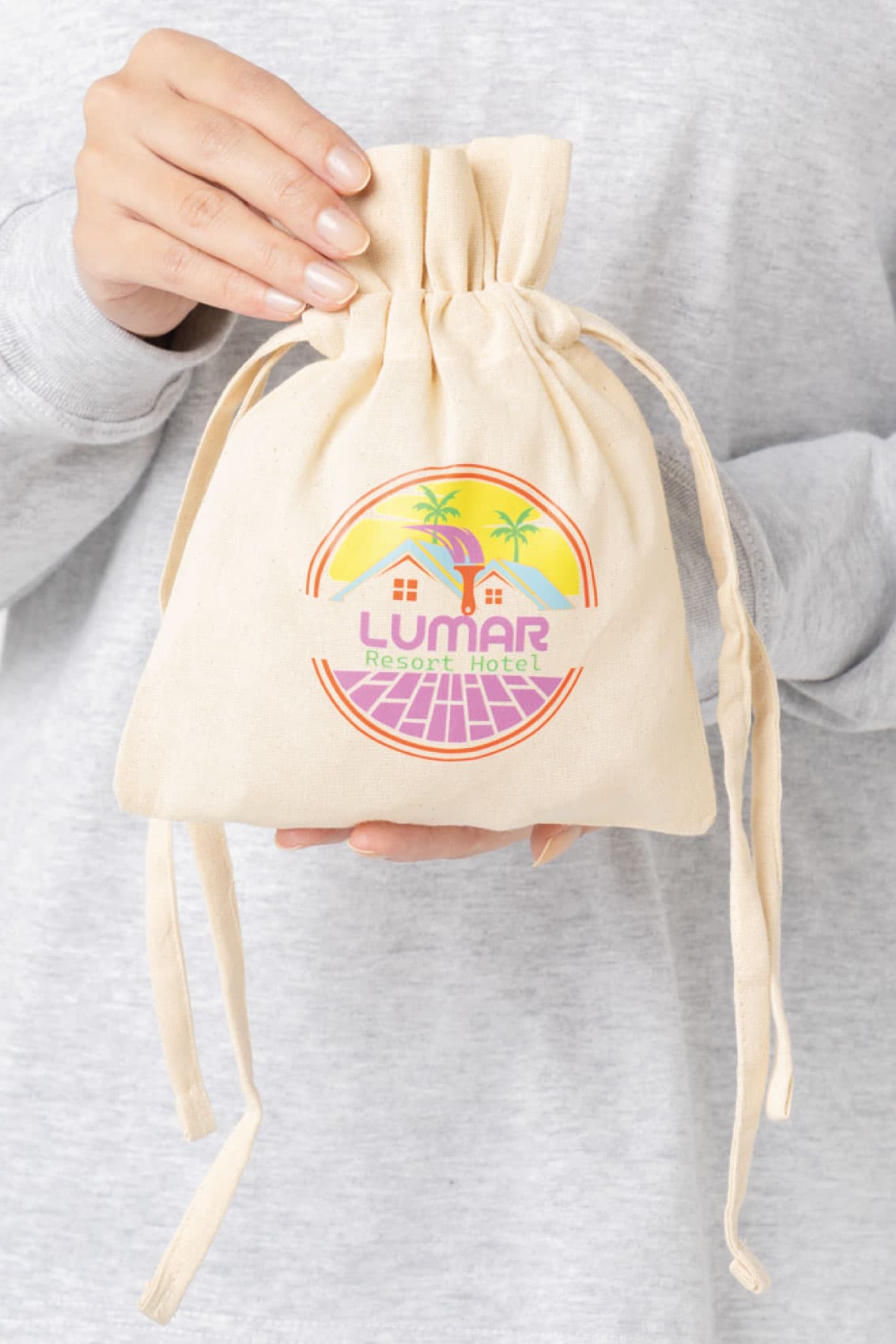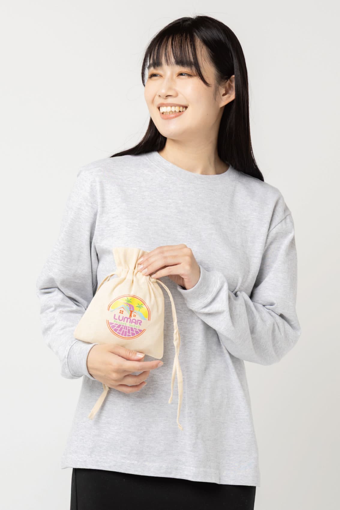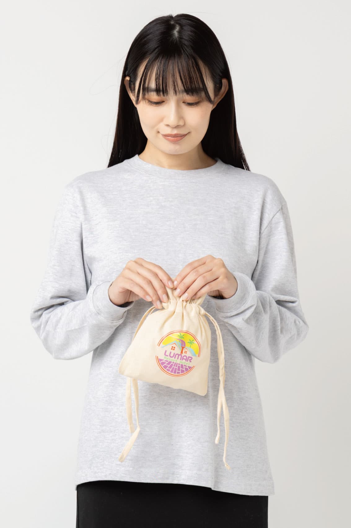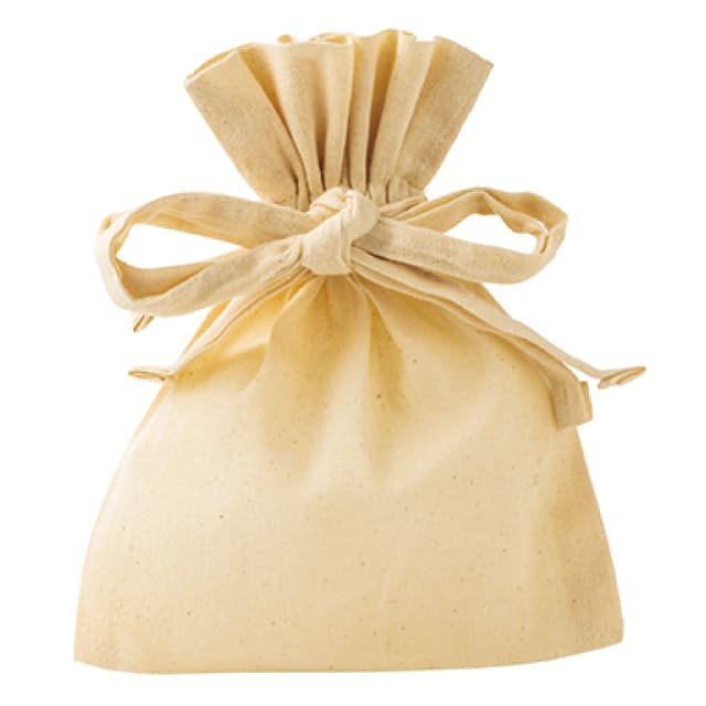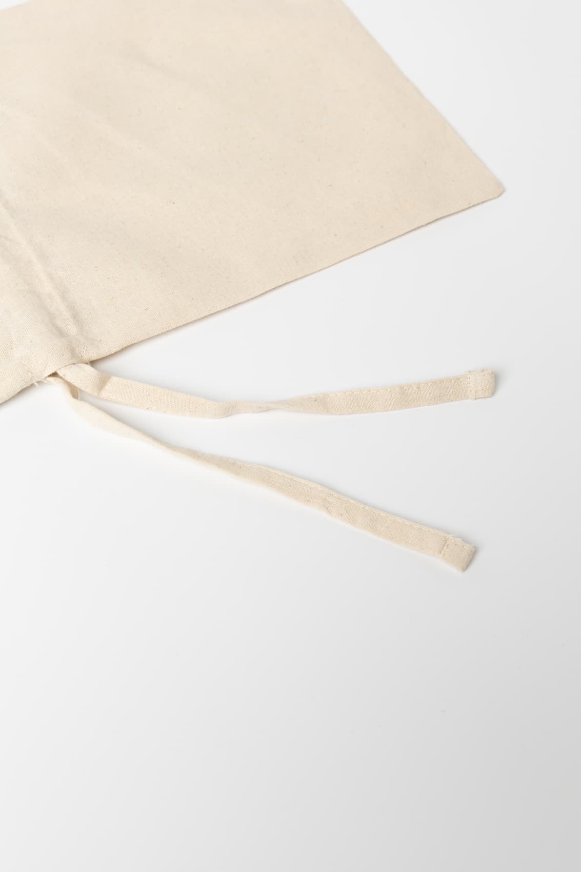 HK-0046 | favoristオーガニックコットン100%を使用した巾着。平らなひもはラッピングの際、蝶結びにするとアクセントとして際立ちます。環境関連のイベントグッズ、ノベルティやギフトラッピング、小物入れとしてなど幅広い用途でお使い頂けます。手間と時間をかけ、大切に育てられた綿花からできた巾着です。Mサイズ(品番:HK-0047)もございます。