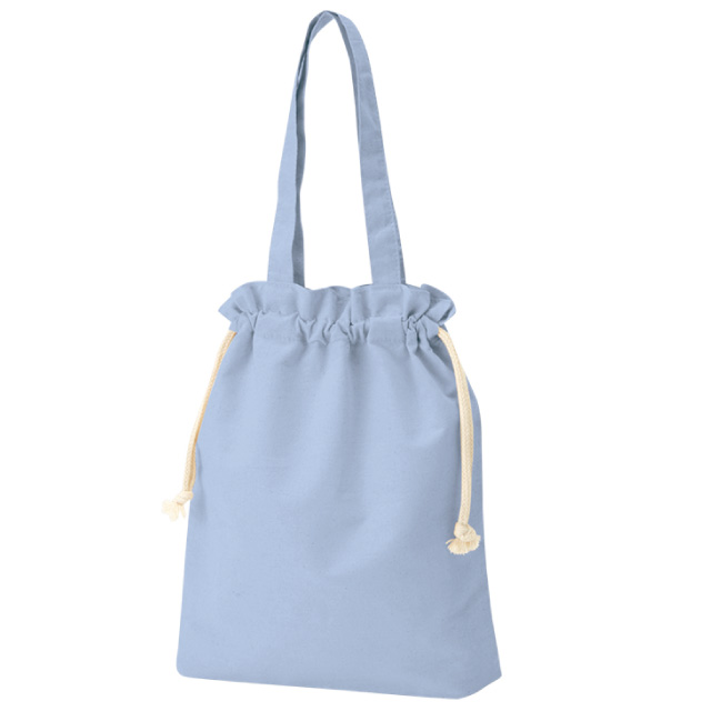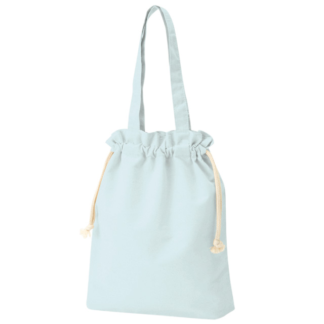 巾着タイプのおしゃれなバッグ。持ち手が少し長めに出来おり、 肩にも掛けやすいデザインになっています。雨の日に傘を持って両手がふさがってしまう時にも大変便利です。ひもを絞って頂けば中の荷物が見えることも無いので、着替えや貴重品を入れても安心です。学生さんなら体育などの移動教室時にも重宝します。デザインのご提案もお任せください!こちらはMサイズ(品番:TR-0872 )もございます。