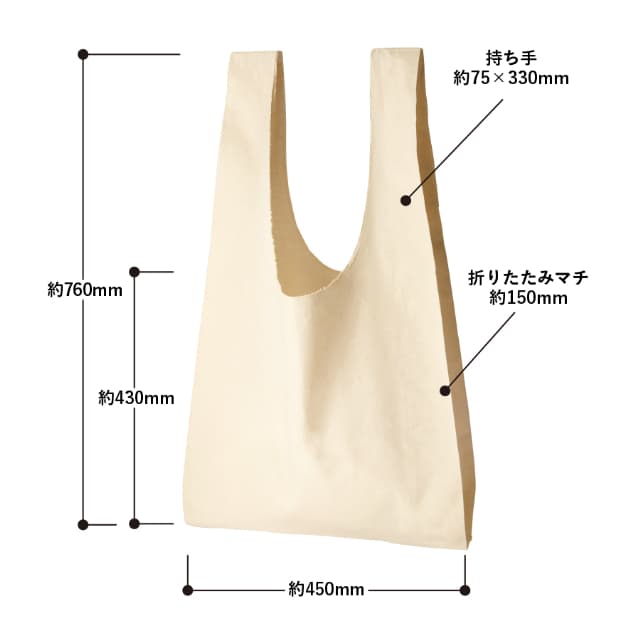 | 本体サイズ | 本体:約縦43(持ち手含む76)×横45 持ち手:約長さ33×幅7.5 折りたたみマチ:約15 |