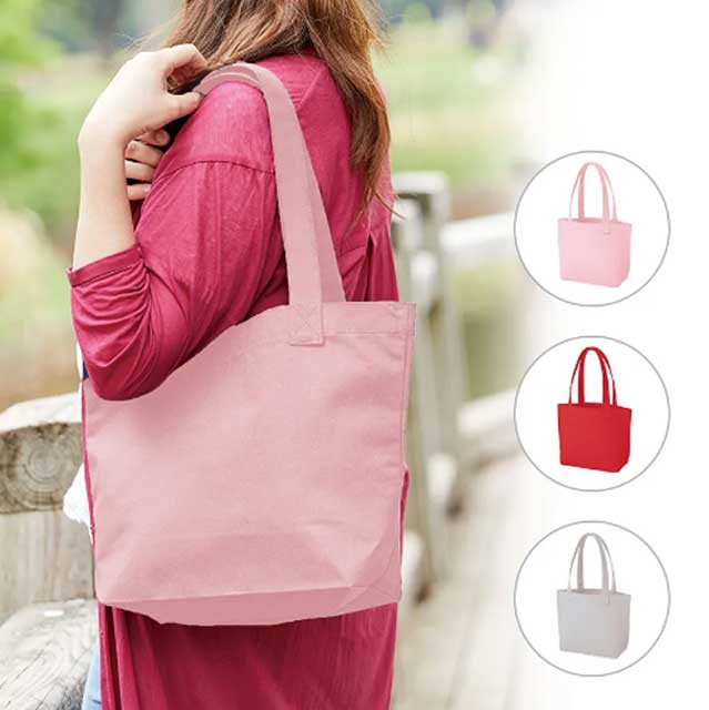 厚手のしっかりした質感で、外付けの持ち手が魅力的なコットン素材のトートバッグです。デザイン性だけでなく、A4サイズも余裕を持って持ち運べる機能面も兼ね備え、カジュアルにお使いいただけます。アパレル商品としても、このシンプルなデザインからロゴやプリントが際立ちます!かわいいカラーなのでお子様向けグッズにもおすすめです。