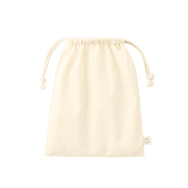 TR-1284 | MARKLESS STYLEオーガニックコットン素材を使用したマチなしのすっきりとしたデザインの巾着Mサイズです。Mサイズは500mLペットボトルが入るサイズ感で、手帳や筆記用具、ガジェット類、工具用品、アウトドア用品などの収納にちょうど良い、嬉しい大きさです。ショップの販促品やアウトドアブランドのオリジナルグッズ、保険会社や銀行などの成約記念品などにもおすすめです。