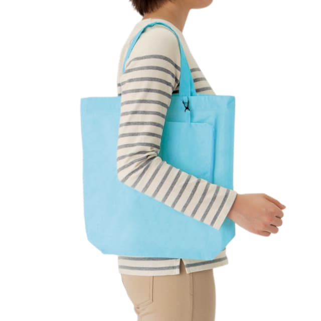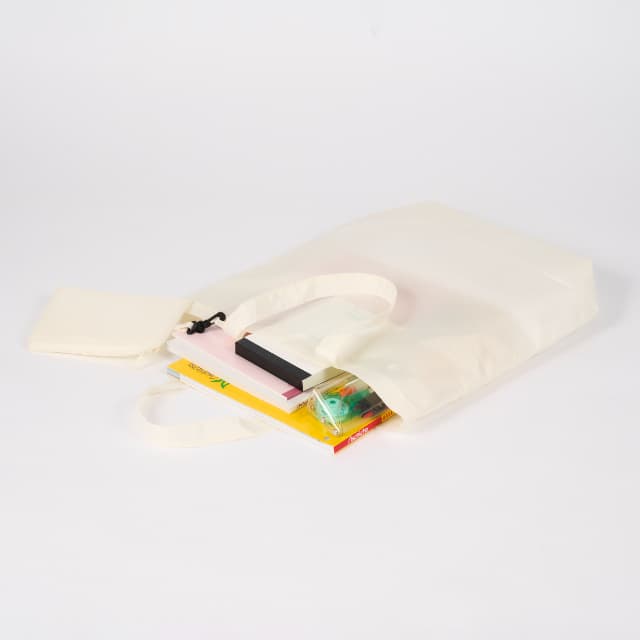 TR-0136 | MARKLESS STYLE折りたたんで収納できるポーチ付きのトートバッグ。旅行先などで荷物が増えてしまうときでも、サブバッグとして携帯できるのでさっと使えて便利です。肩に掛けやすく、A4サイズも入れることができる普段使いにちょうど良いサイズ。学校・企業・団体名などを入れたオリジナルアイテムを低価格で簡単作成!デザインのご提案もお任せ下さい。もちろん、急な大量発注にもすぐに対応させていただきますので、お気軽にご相談下さい。