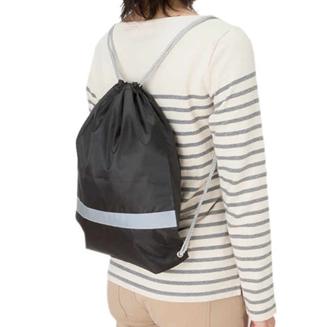 TR-0296 | MARKLESS STYLE車のライトなどに反射するリフレクター素材付きのナップサックです。自分の存在を周りに知らせることが出来るので、夜道を歩く際も安心です。500mLのペットボトルやタオルなども楽々入り、ペットの散歩や部活のサブバッグとしても使えます。小中学校などの交通安全推進の一環としても配布しやすい商品になります。防災用バッグとしてもおすすめ!防災月間のノベルティやお子さまのスポーツイベントのノベルティなど、習い事の荷物を入れるリュックとしてもご提案いただけます。