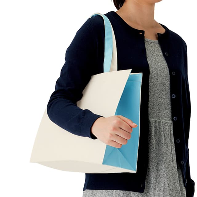 TR-0766 | MARKLESS STYLEしっかりとしたマチ付で、軽くて持ち運びが便利な大容量のトートバッグです。厚みのある資料がかさばらず収納出来ますので、荷物が増えてしまうセミナーや企業イベント、説明会の際にも非常に便利です。大きくプリントができますので、ロゴやマーク、企業名やメッセージをプリントすれば宣伝効果も期待できること間違いなし!カジュアルな印象の色味をご用意しました。