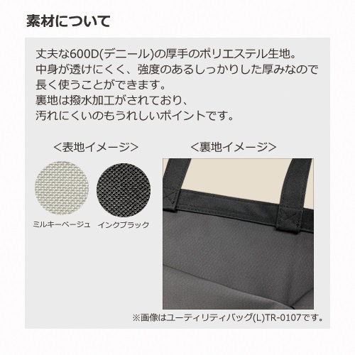TR-0182 | MARKLESS STYLE丈夫な厚手のポリエステル生地を使用した、A4サイズが入るポリエステルトートバッグです。強度のある中身の透けにくい生地を使用し、かつファスナーが付いていることで中身をなくす心配もないので、アウトドアシーンにも重宝します。趣味のお仲間で揃えて道具や軽食を入れたり、手芸教室で使う道具やハギレをまとめたりと幅広い用途でオリジナルバッグを作製できます。オリジナルデザインやロゴをプリントして福袋や限定ノベルティグッズとして販売すれば特別感も演出できます。
