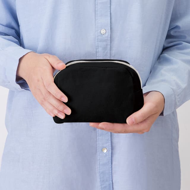 TR-0824 | MARKLESS STYLEバッグに収まりやすいころんとした形状のマチ付きポーチです。マチ付きなので、小さいながらも化粧道具や文具、かさばる小物などまとめてたっぷり収納できます。他にはないオリジナルなプリントや刺しゅうを入れて、雑貨店のオリジナル商品やショップノベルティとしてもおすすめの商品です。こちらはサイズ違いでMサイズ(品番:TR-0825)もございますので、セット商品としてもご用意いただけます。