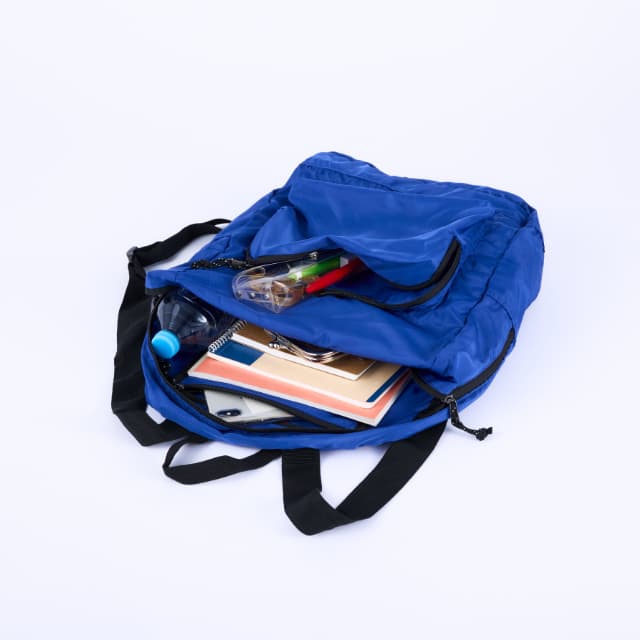 NPD-350 | TRUSS見た目はシンプルでも使いやすさ抜群の、コンパクトに畳めるリュック。軽量なナイロン素材で、内ポケットに収納するとぐっと小さくなるので、持ち運びにも便利です。お買い物のサブバッグや旅行・アウトドアでのバッグなどにおすすめです。水を弾くはっ水機能で、急な雨や汚れなどにも対応します。サークルやお仲間で、自分だけの旅行用バッグに、素敵なデザインを入れてみませんか。