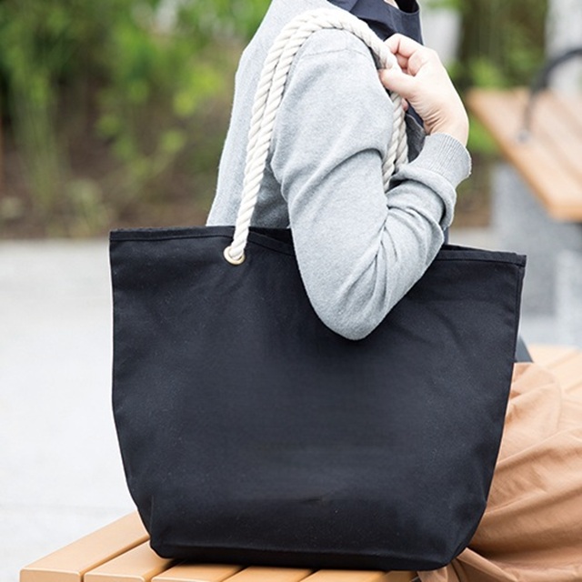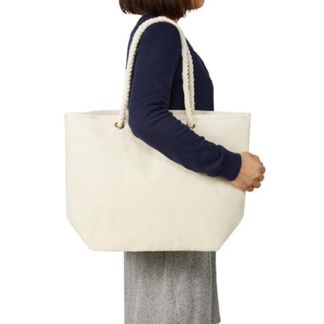 TR-0948 | MARKLESS STYLE太めのロープハンドルが目を引く、さわやかな印象のマリントート。やわらかい生地で大きめのサイズなので、メインバックとしても活躍します。しっかりとしたロープは肩掛けの際もジャストフィット!参考書などを多く持ち歩く学生には使い勝手も良く、とても喜ばれるアイテムです。ロゴやマークなどをプリントし記念品としてプレゼントするのも素敵です。キャンペーンやアパレルの購入特典での販促品だけでなくアーティストの物販品などにもおすすめの商品です。
