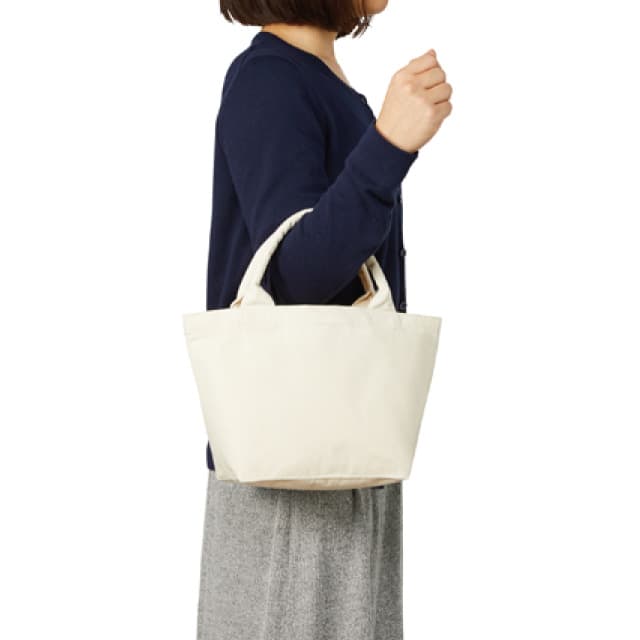 TR-0949 | MARKLESS STYLEシンプルでしっかりした生地の、実用性に優れたキャンバストートバッグ。こちらは小物や500mLのペットボトルを入れるのにちょうど良いサイズで、ランチトートとしてもお使いいただけます。やさしい印象の持ち手部分は芯が入っているので、重いものを入れても丈夫で安心です。素敵なオリジナルデザインを入れれば、お気に入りのバッグになることうけあいです!おしゃれなマートや雑貨店のオリジナルアイテムとしてもいかがですか。