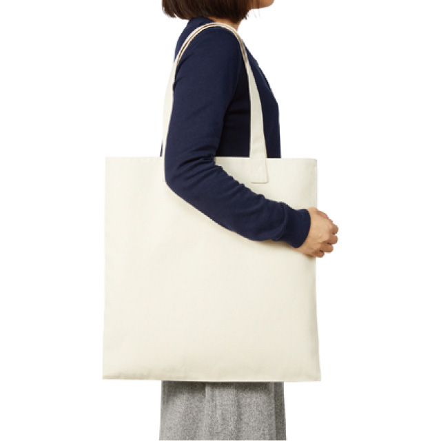 底マチのないフラットタイプの、すっきりシンプルなトートバッグ。外側にしっかりと縫われた持ち手がポイントです。A3サイズが入る大判バッグはちょうどよい重量感と厚みで、荷物が増えても安心です。販促品や展示会、イベントなどのノベルティとしてオリジナルデザインを入れてもおすすめ!ロゴやネームを入れ、学生さん向けのキャンバスバッグとしても最適です。シーンを選ばず、どの用途でも大活躍するアイテムです。