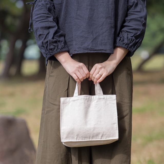 TR-0904 | MARKLESS STYLE出し入れ簡単な幅広マチの、シンプルなボックス型ランチトートバッグ。お弁当箱と500mLのペットボトル1本を入れるのにちょうど良い大きさです。ランチバッグ以外にも、長財布やスマートフォン、ハンカチなどを入れちょっとした外出用にもおすすめ。オリジナルデザインを施してプレゼントにもいかがでしょうか。ショップのノベルティや記念品にも最適!ぜひお店のロゴを入れて宣伝しませんか。