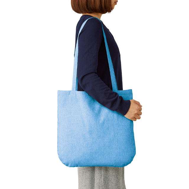 角を丸く仕上げたフラットな形状のバッグです。軽くて物を出し入れしやすく、コンパクトに折り畳むことが可能です。持ち手が少し長めに作られていますので、肩にかけやすくなっています。デザインをプリントして、ショップバッグとしてもお使いいただけます。特にアパレルショップで人気がありますので、お店のロゴなどを入れると宣伝効果にも繋がりますね。また、保育園用のバッグとして着替えやオムツを入れてストックしておくのにも便利です。