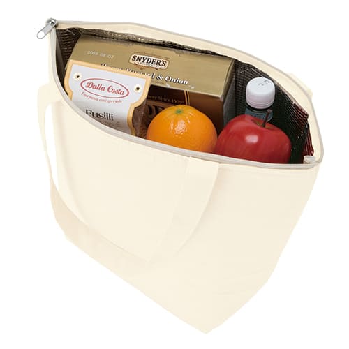 TR-0770 | MARKLESS STYLEちょっとしたピクニックなどに適したサイズの保冷トート。ナチュラルな雰囲気のコットン生地で一見保冷バッグに見えないところがポイントです。バッグの内側には保冷効果のあるアルミシートが貼られており、お手入れも簡単で衛生面も安心です。ファスナー付きで中の冷気が外に漏れるのを防ぎます。日常使い以外にも、 飲食品のイベントやキャンペーンのノベルティとしてもおすすめです。こちらはSサイズ(品番:TR-0769)もございます。