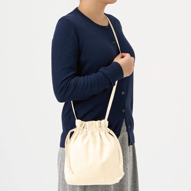 TR-1300 | MARKLESS STYLEオーガニックコットンを使用した巾着型のショルダーバッグです。農薬不使用で環境に優しく、程よい厚みの生地で中身が透けにくいのも特徴。巾着紐とショルダーが別ひもなので、肩掛けしながらの開閉もしやすいです。カジュアルでおしゃれなノベルティグッズやショップの販促品、アウトドアブランドのオリジナルグッズなど幅広い用途におすすめの商品です。