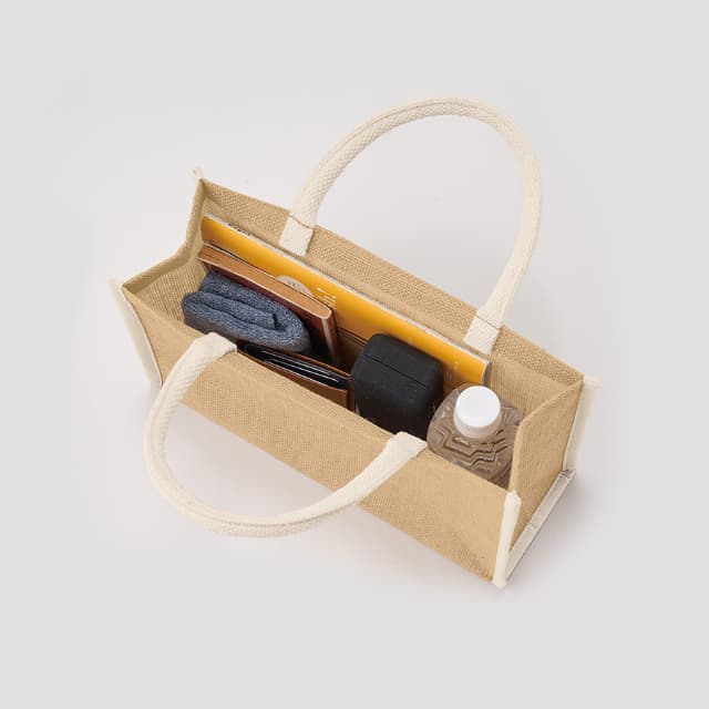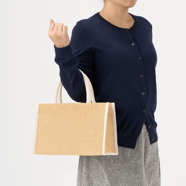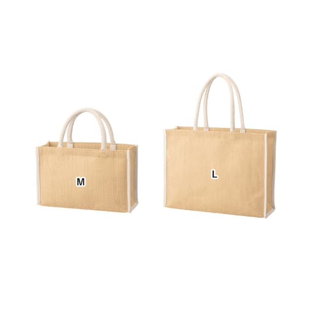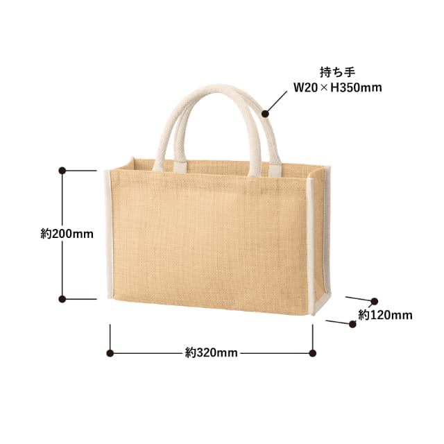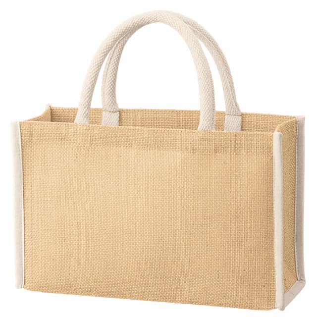 TR-1289 | MARKLESS STYLEバッグ側面のパイピングや持ち手部分にカラーの入った、ジュート素材のバッグです。ひと味違ったジュートバッグをお探しの方にぴったり!見た目はコンパクトですが、500mLのペットボトルを縦に入れる事ができ、しっかりと荷物を収納することができます。ランチタイムやちょっとしたお出かけにも使いやすいサイズになっています。オーガニックのコスメや食料品を扱ったショップなどのパッケージとしてもおすすめです。